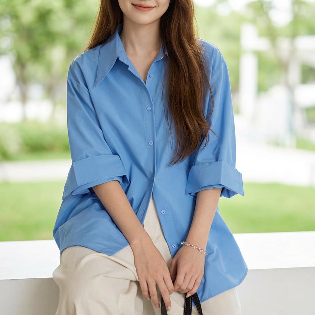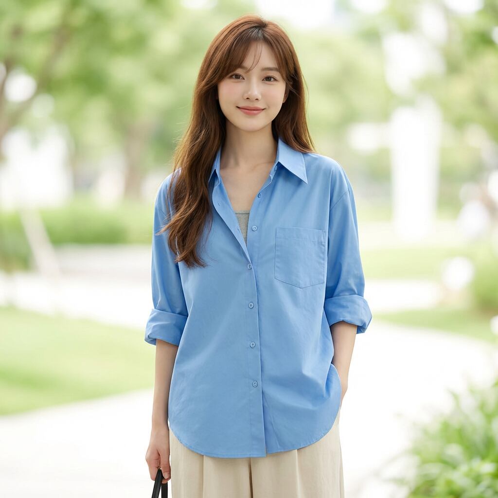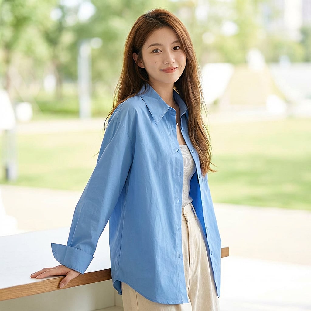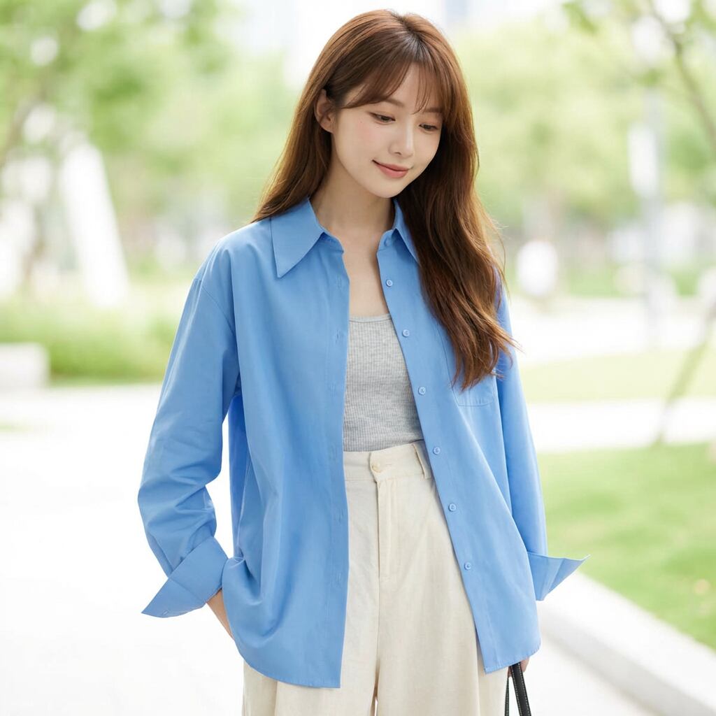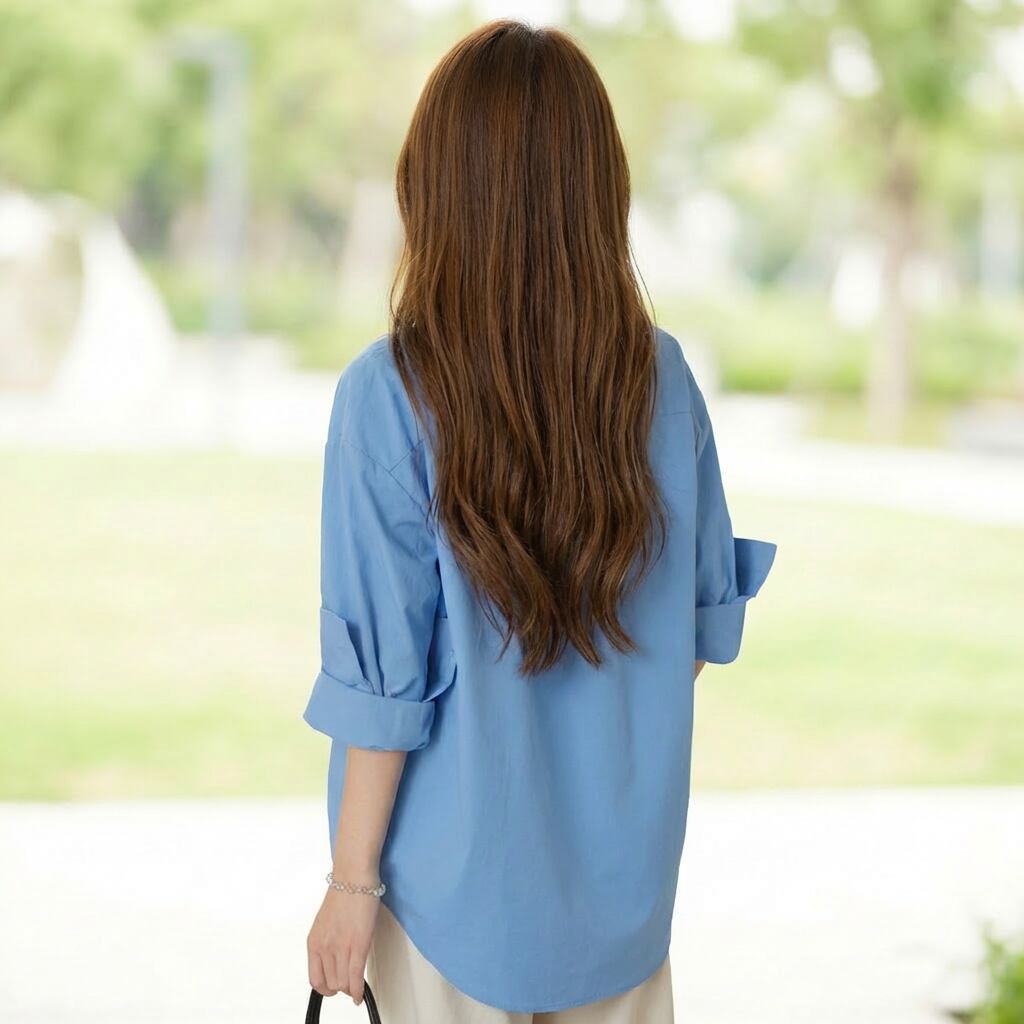 長袖 カラーシャツ ヒップ丈 ライトブルー S8002