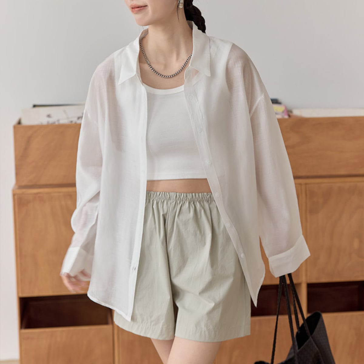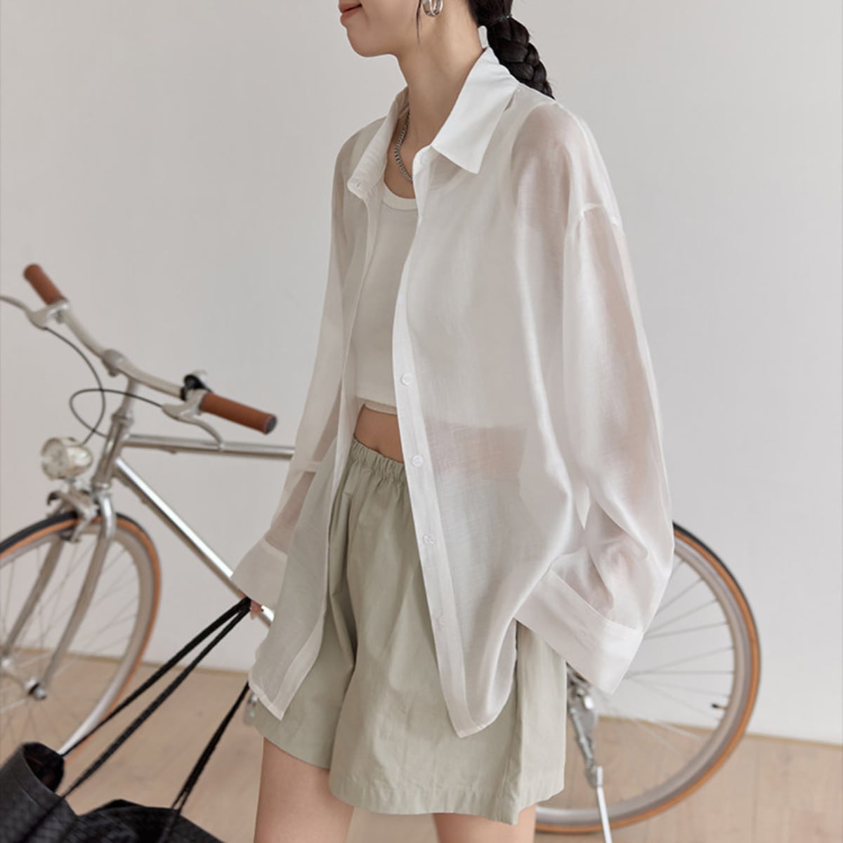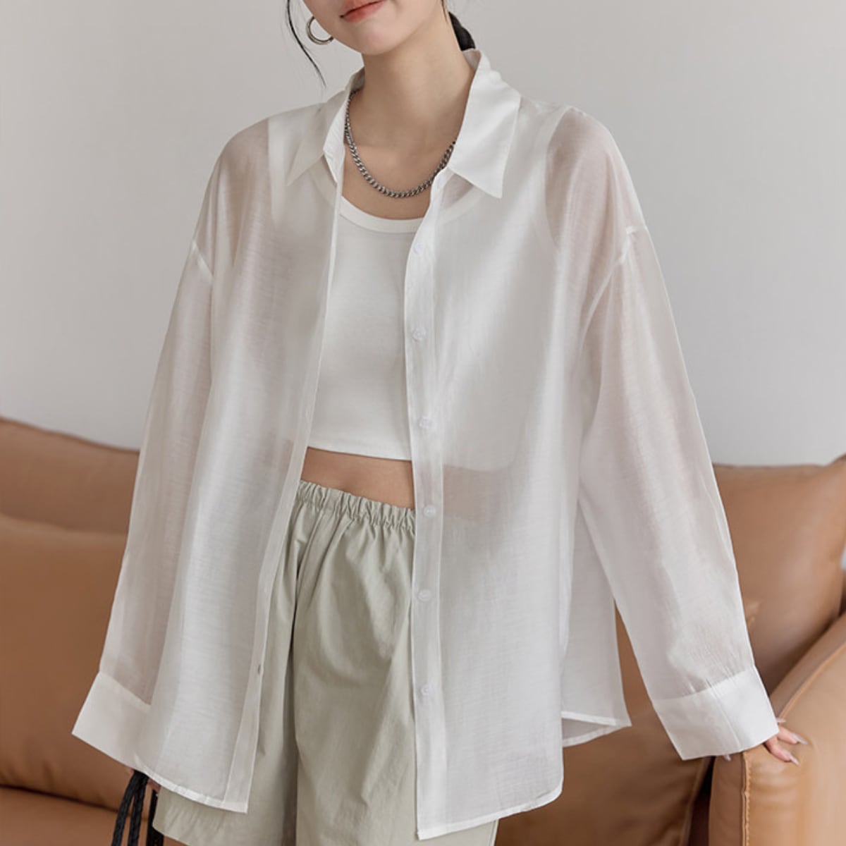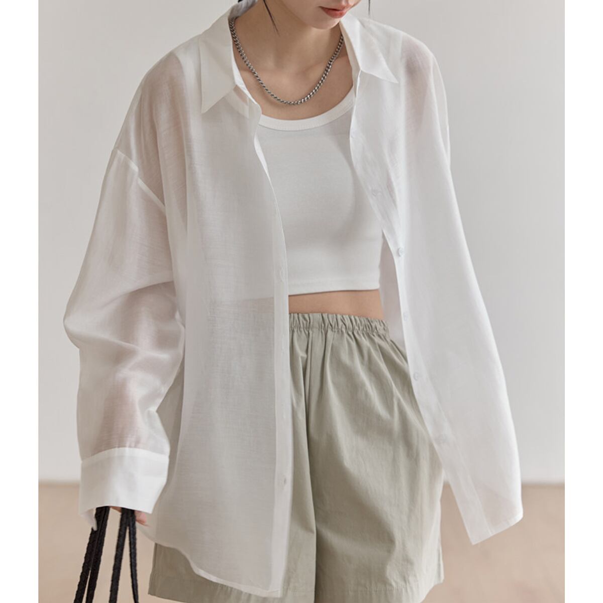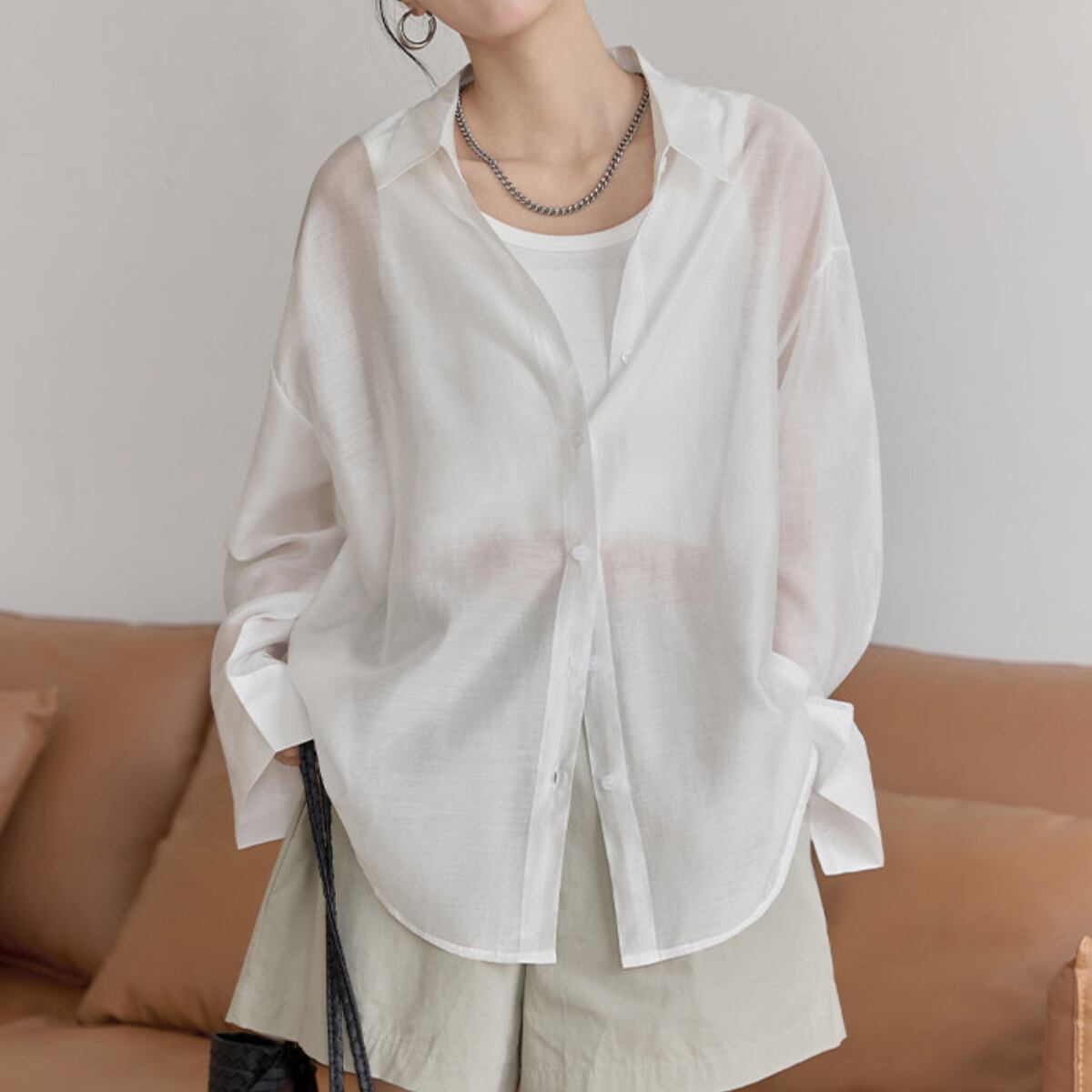 Tシャツやタンクトップに羽織るだけで、こなれた雰囲気を演出します。