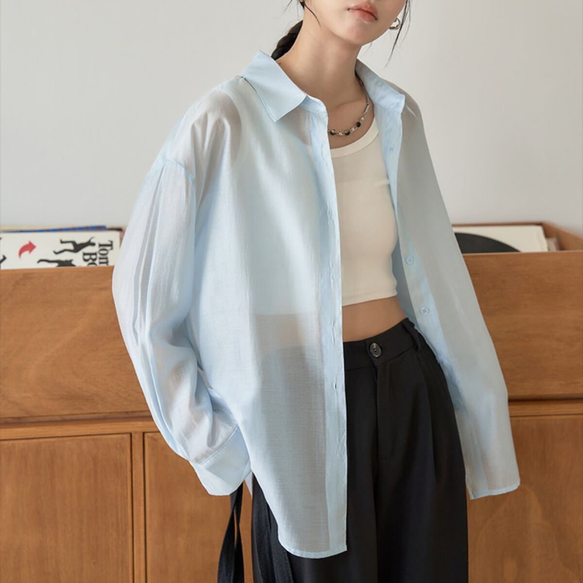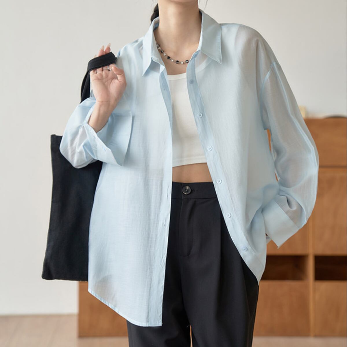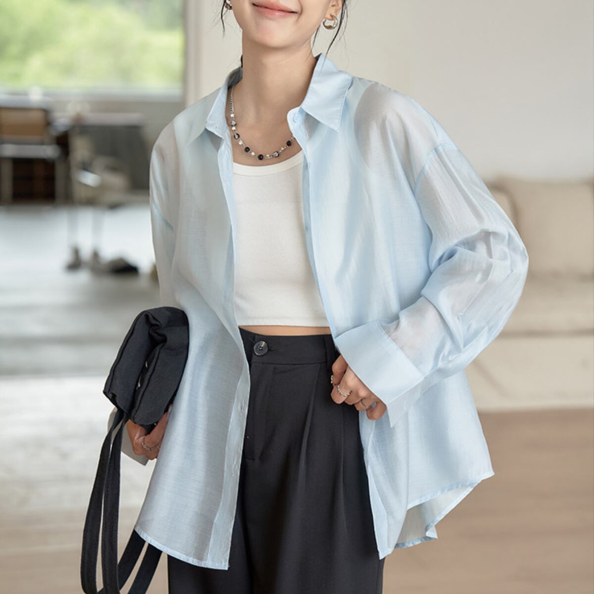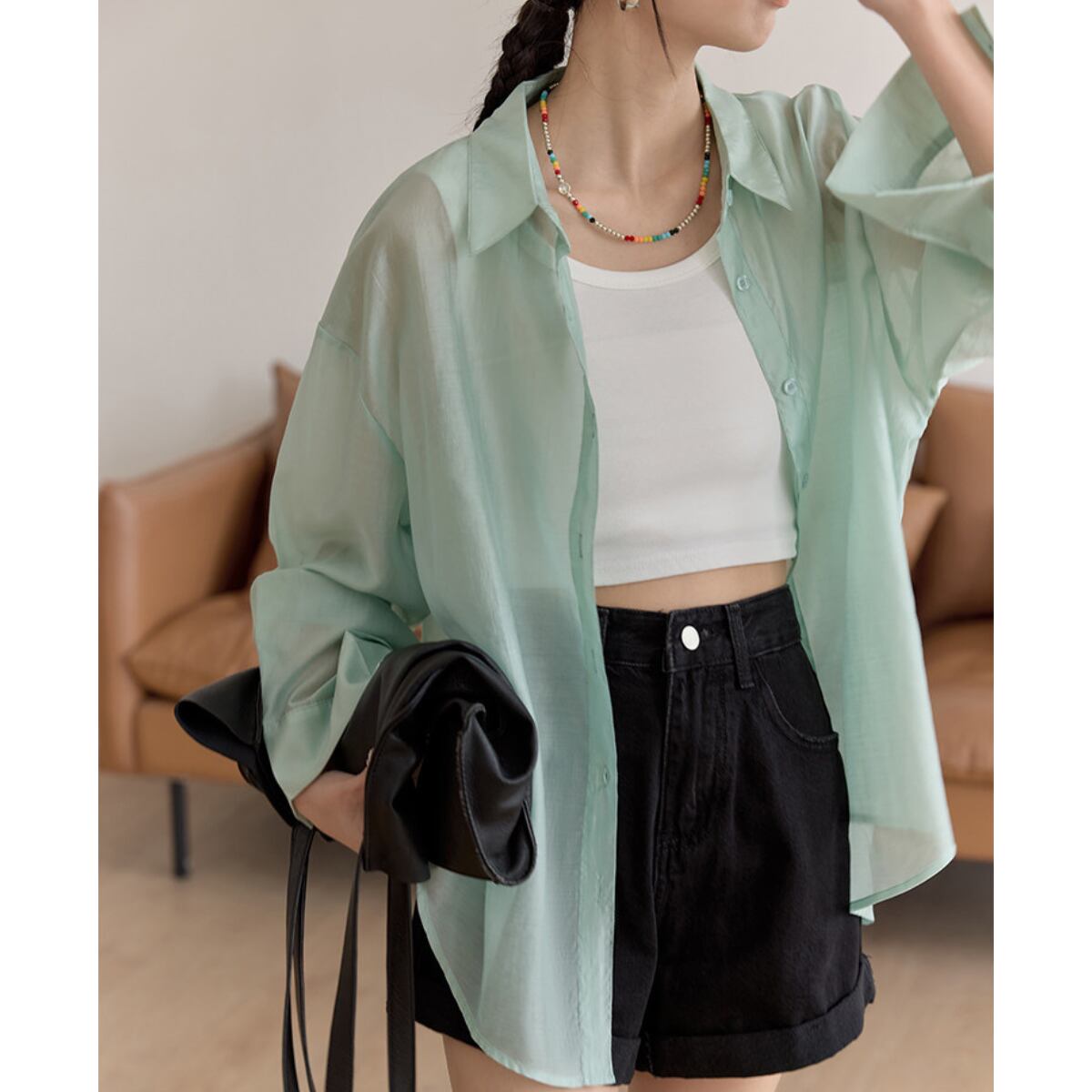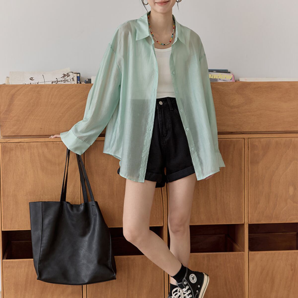 Tシャツやタンクトップに羽織るだけで、こなれた雰囲気を演出します。