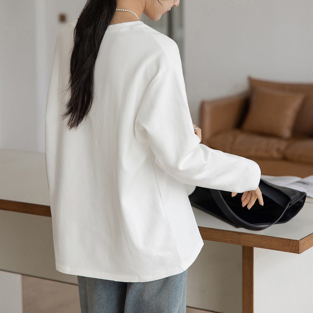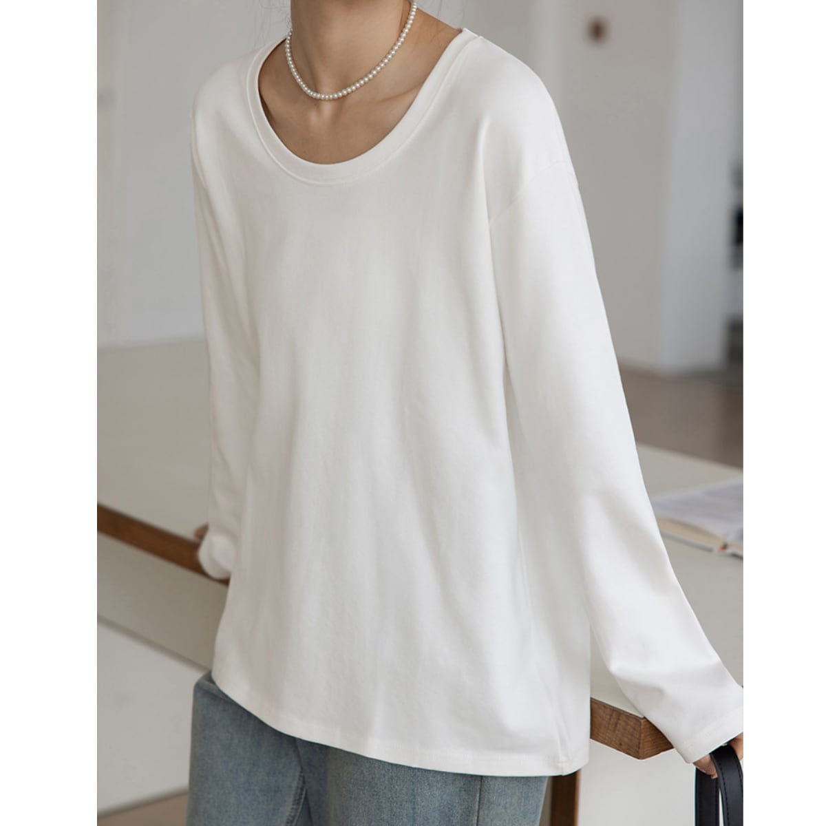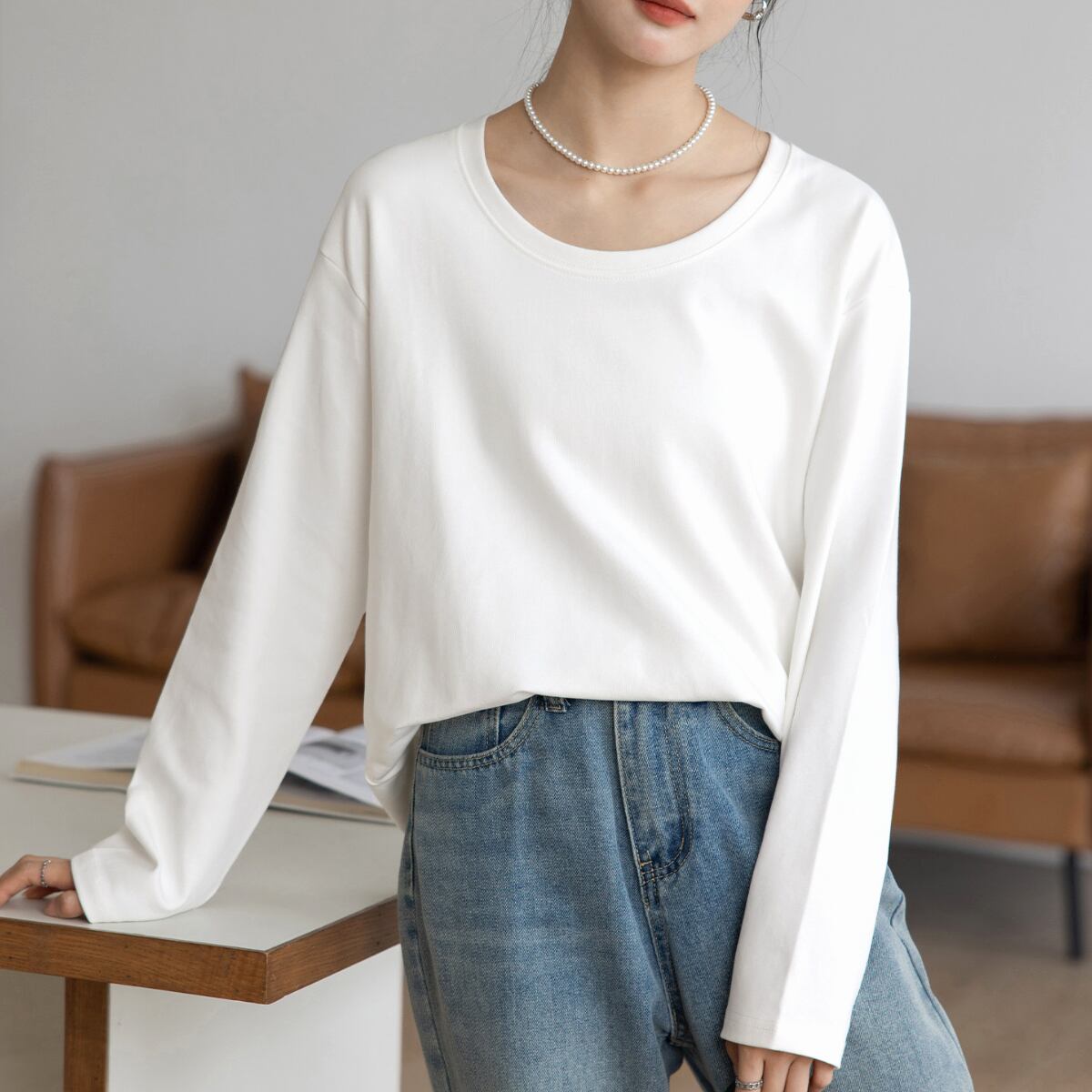 長袖 ラウンドネック カットソー ヒップ丈 ホワイト K0004