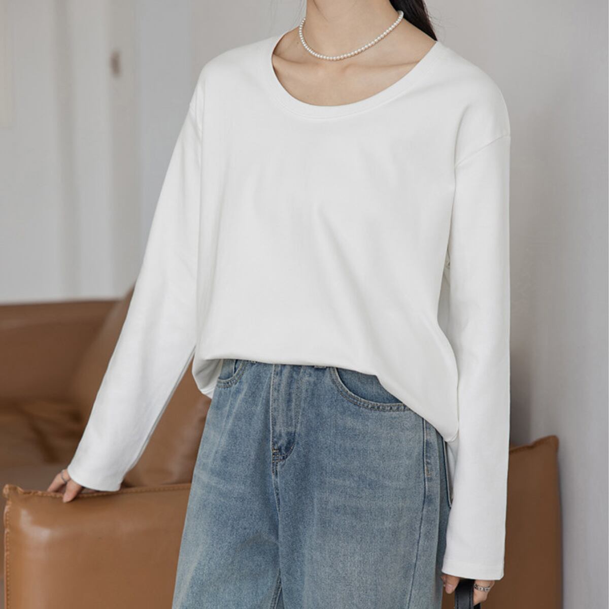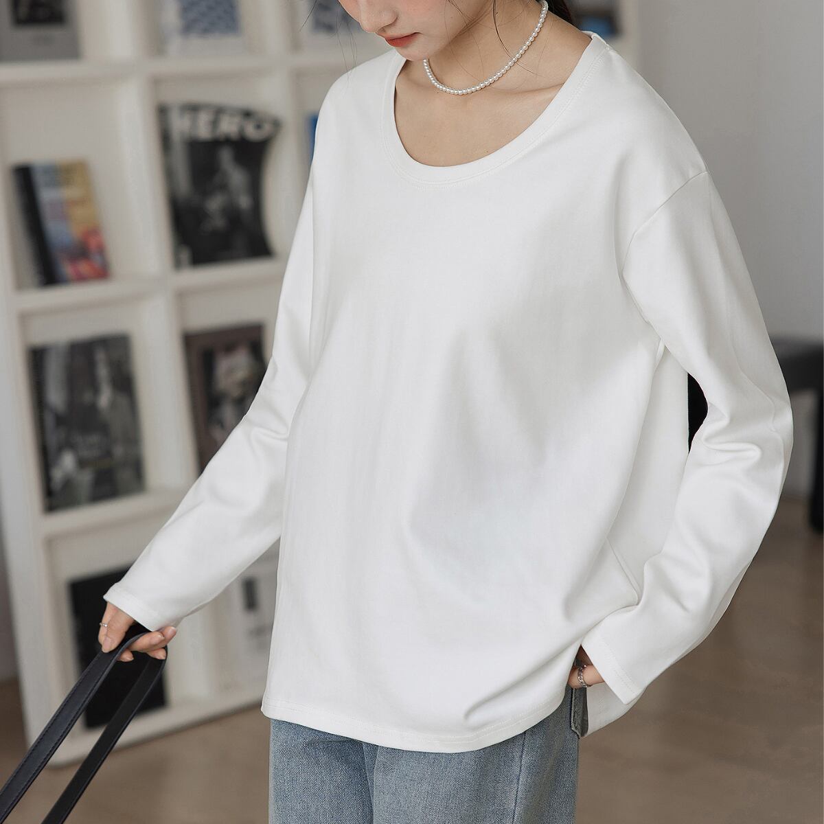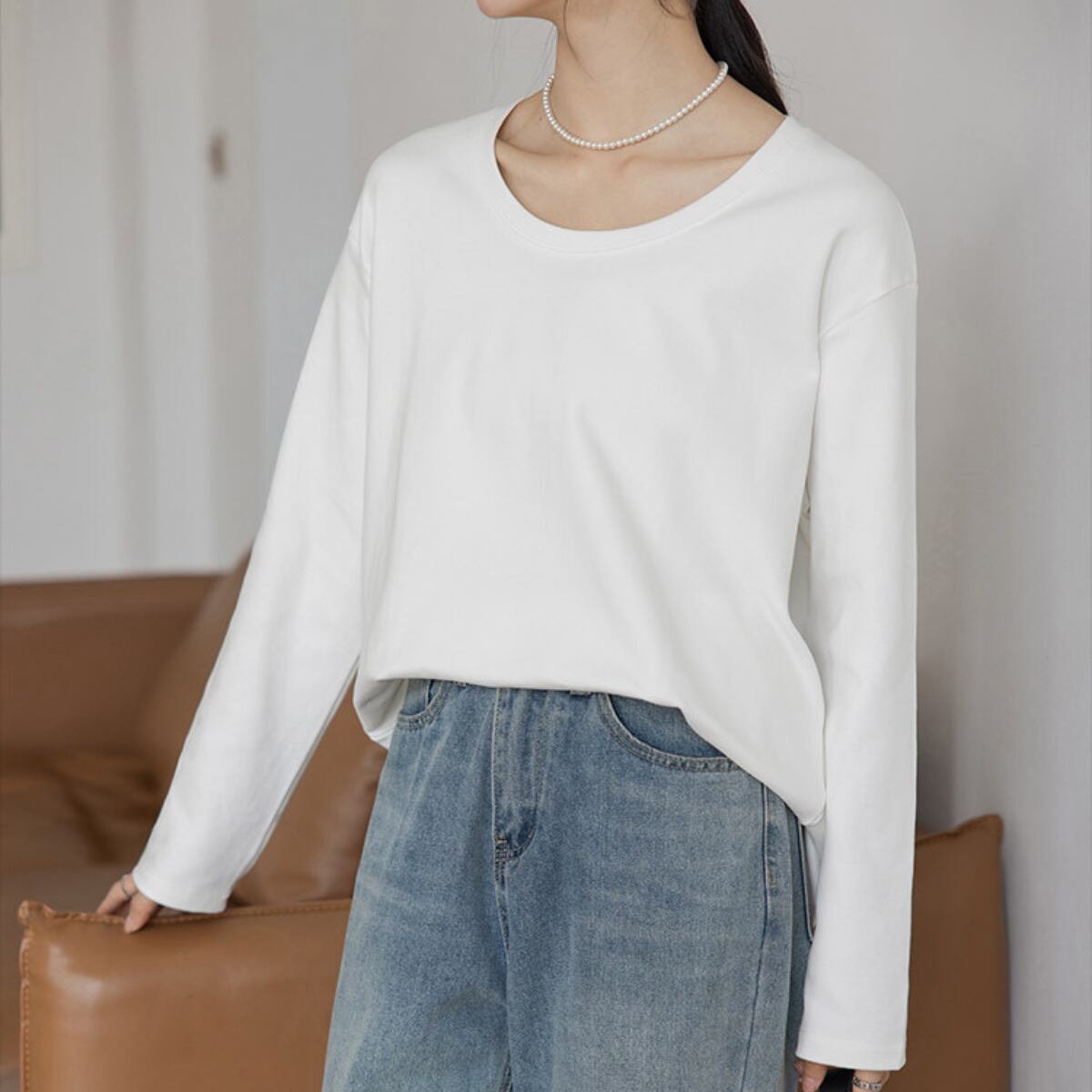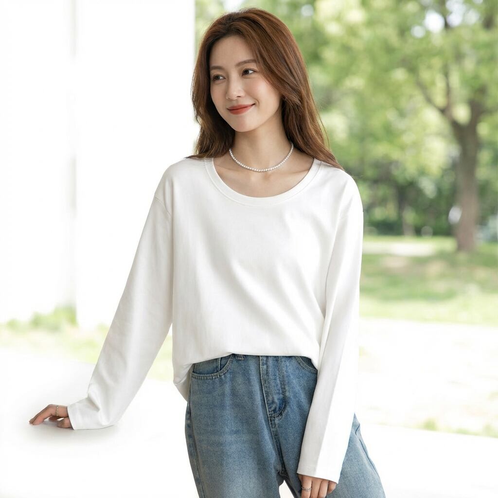 長袖 ラウンドネック カットソー ヒップ丈 ホワイト K0004