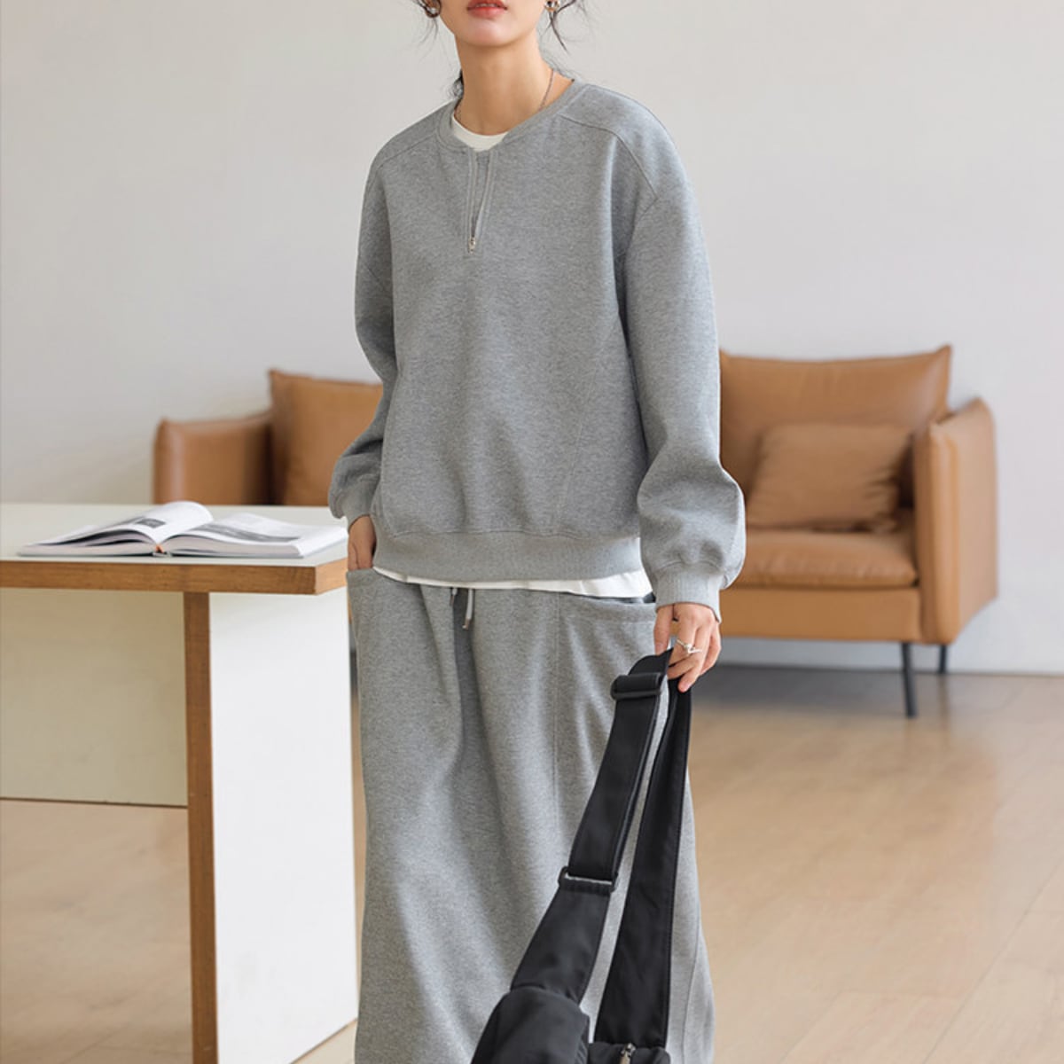 ハーフジップのデザインが、着こなしにこなれ感をプラスします。