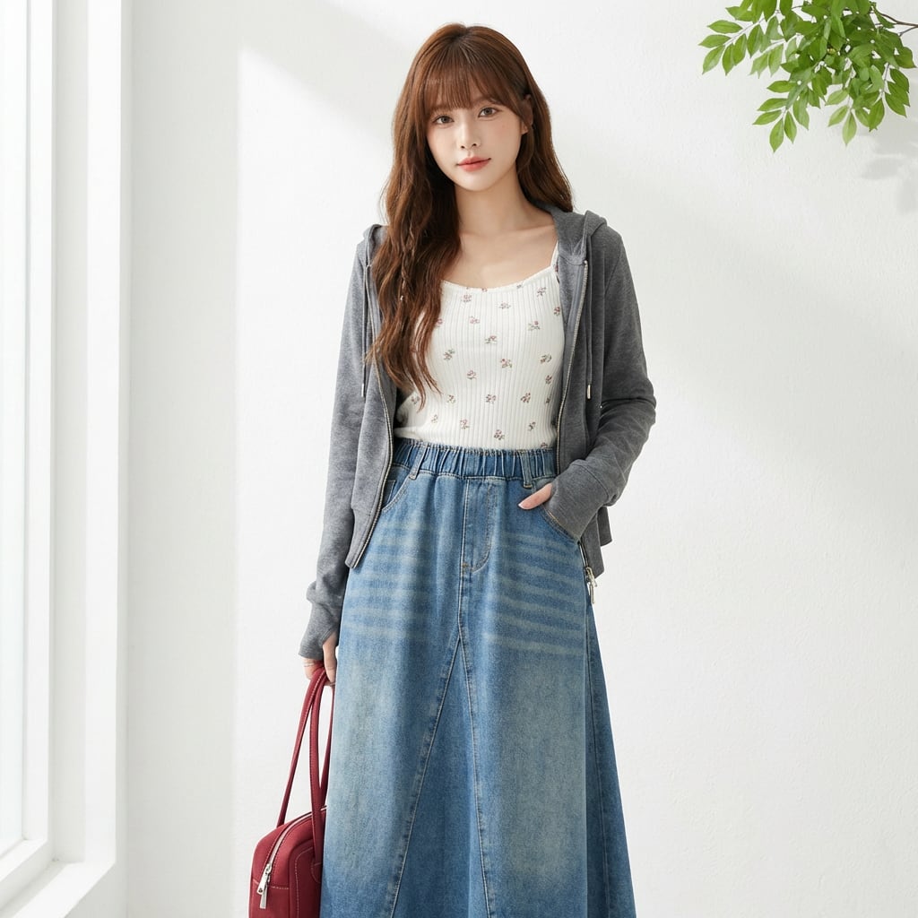 リラックスした穿き心地と、美しいシルエットを両立したフレアデニムスカート。