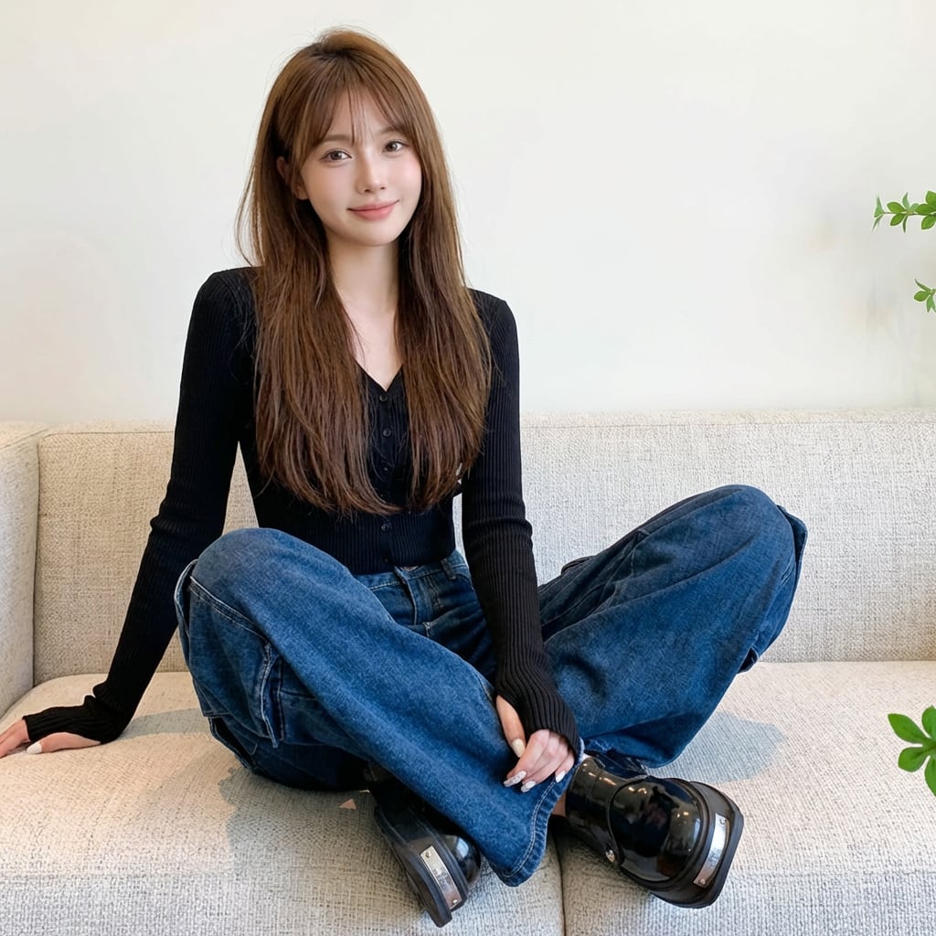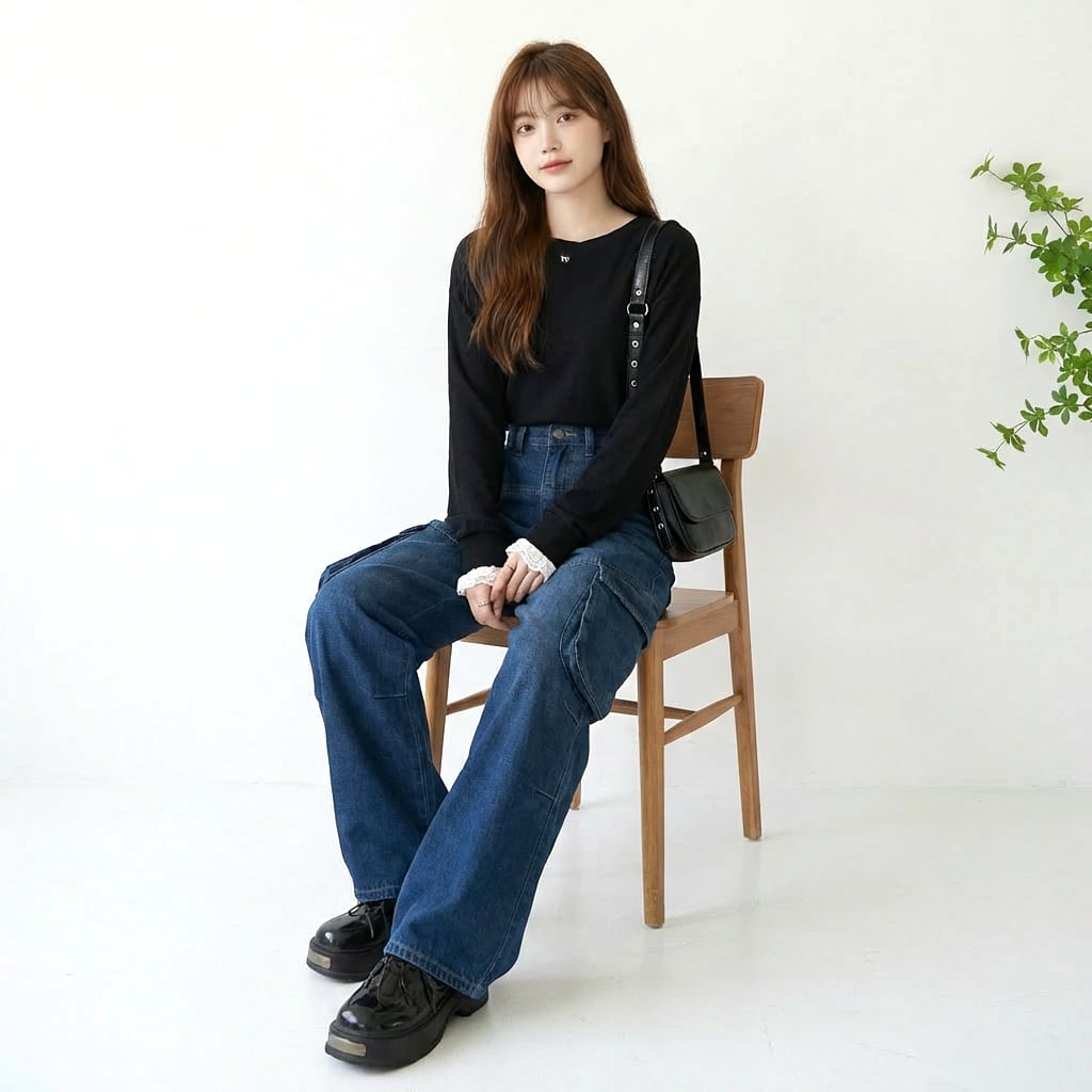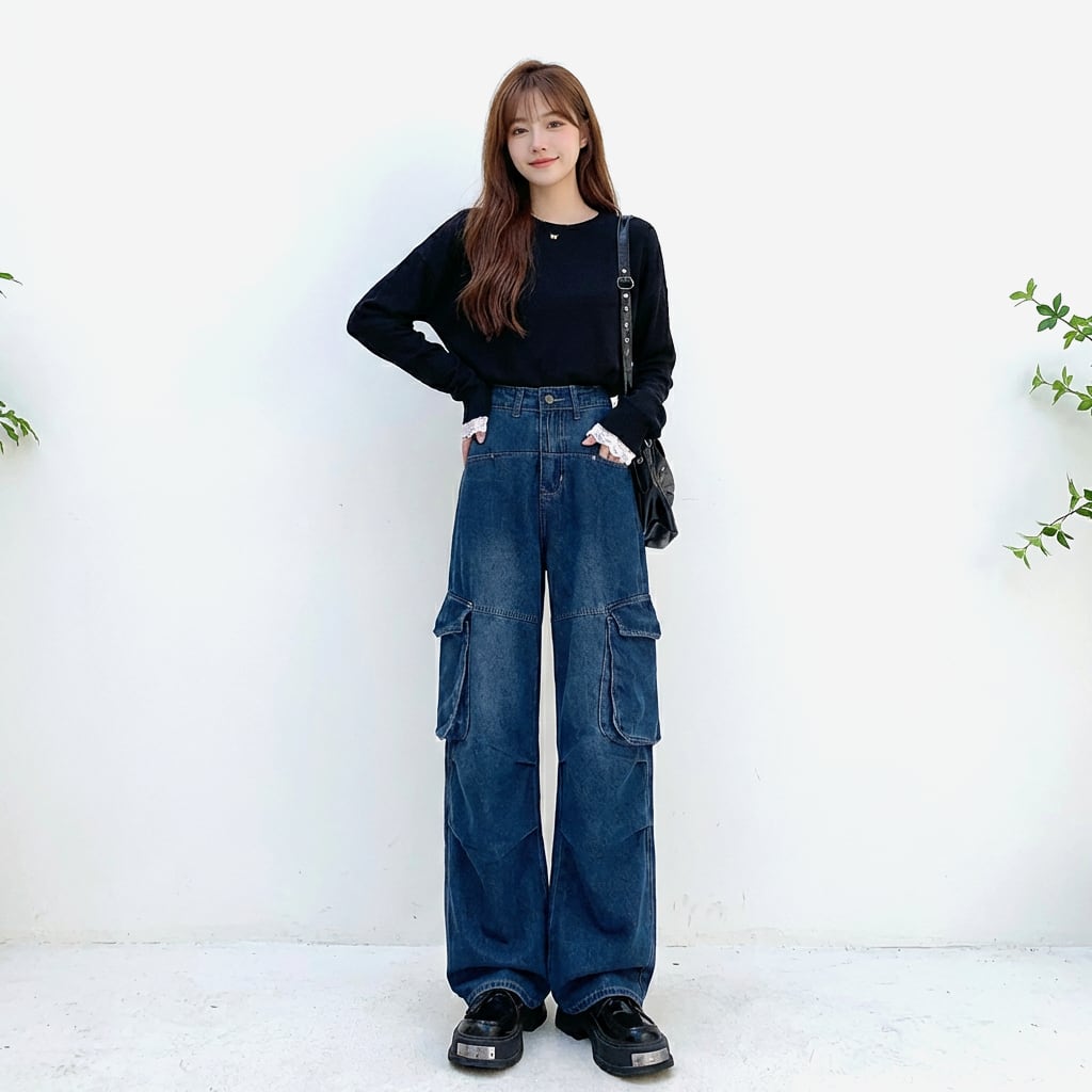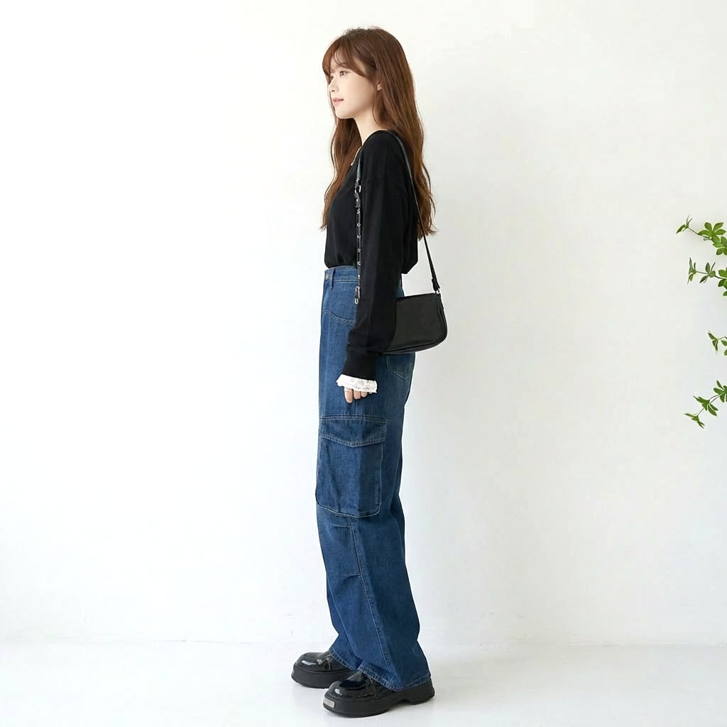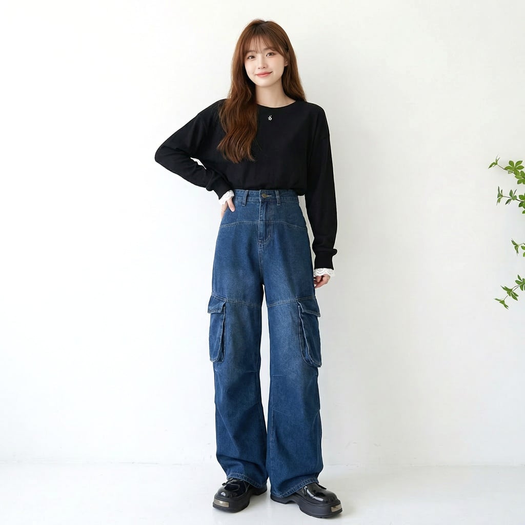 カジュアルスタイルを格上げする、フルレングスのワイドデニムパンツ。