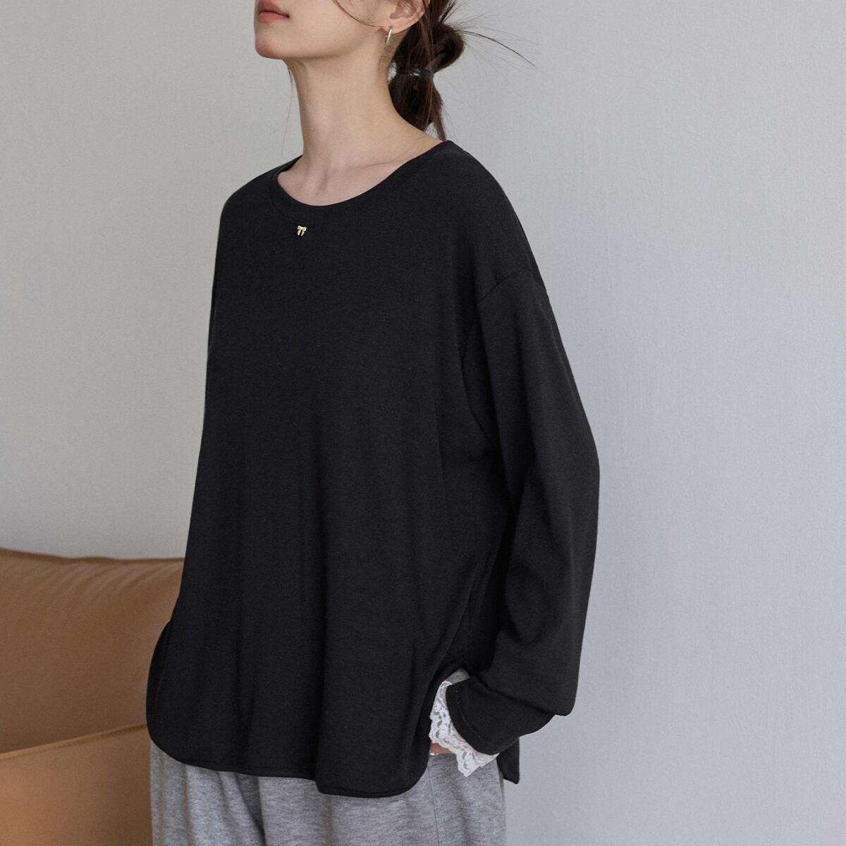 さりげないレース使いがポイントの、大人のためのカットソー。