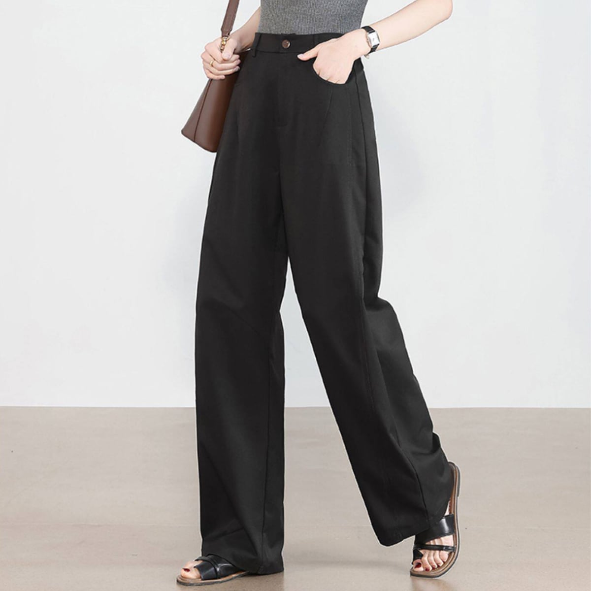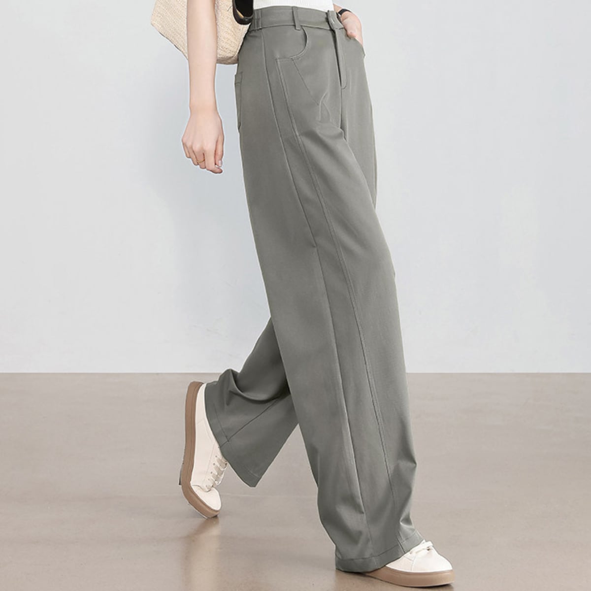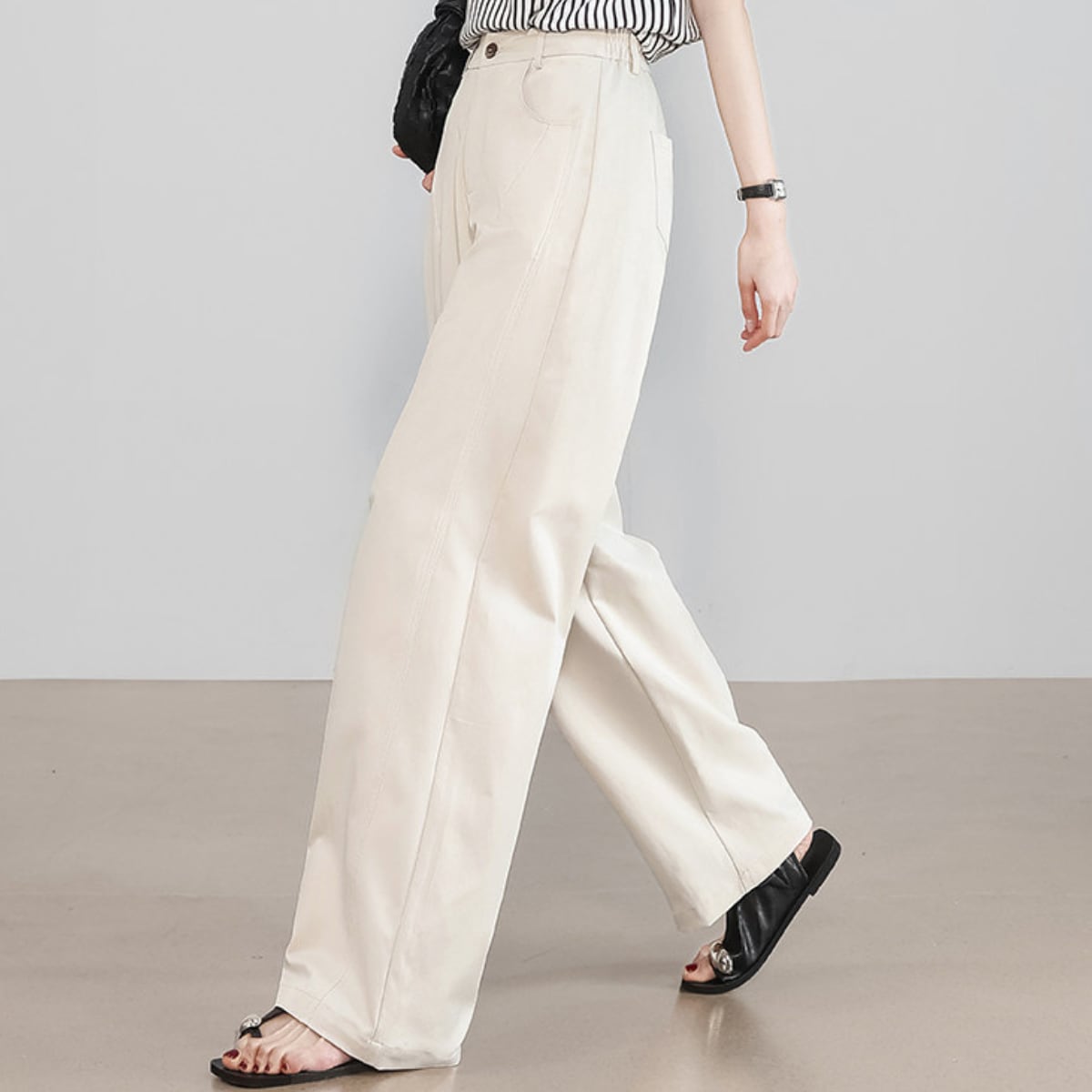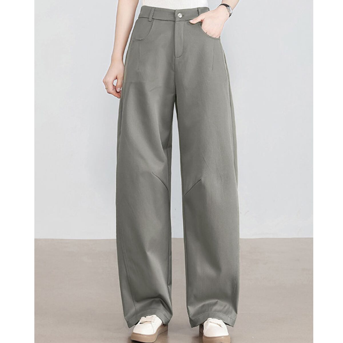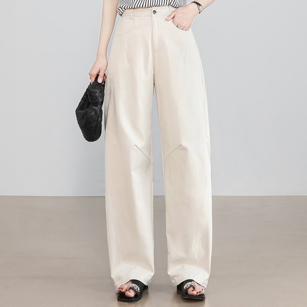ハイウエスト ストレートワイドパンツ オフホワイト ベージュ グレー ブラック BP3006