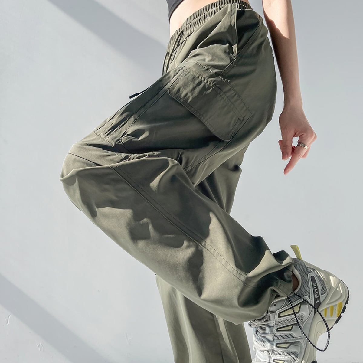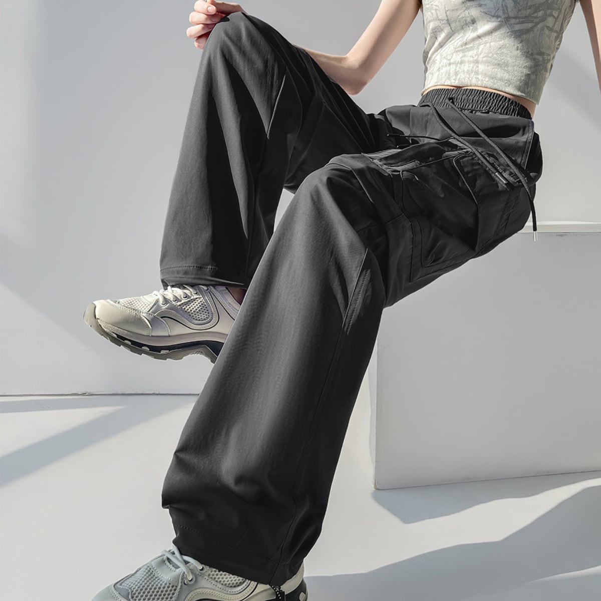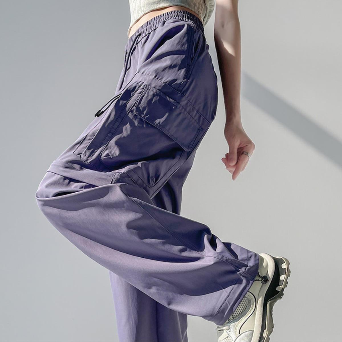 膝部分のファスナーで取り外し可能で、ロングパンツとショーツの2通りのスタイルが楽しめるカーゴパンツ。