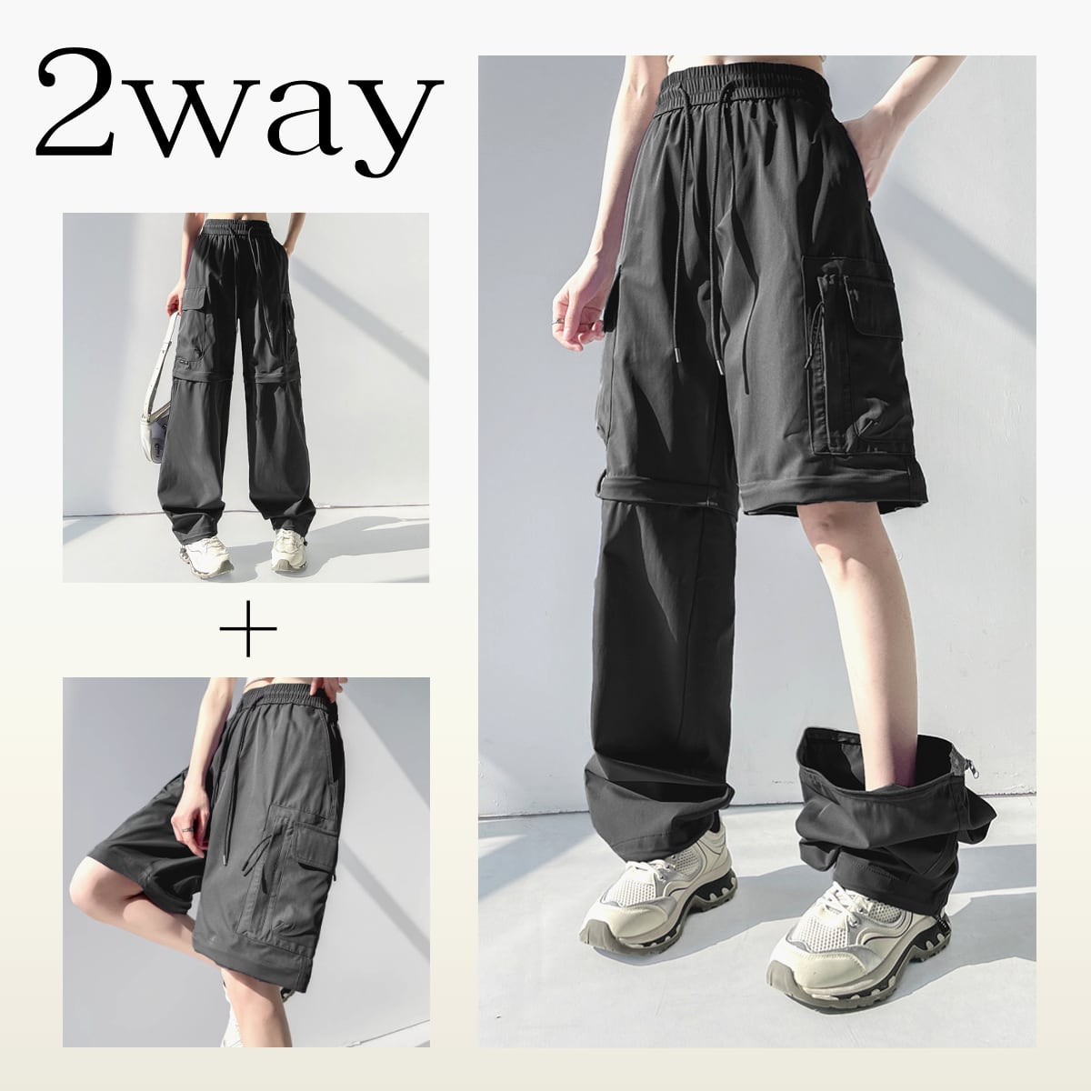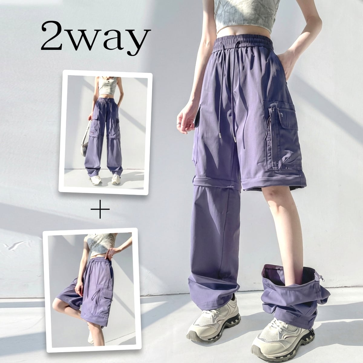 2wayカーゴパンツ ロングパンツ ショートパンツ ブラック パープル グレー カーキ BP3008