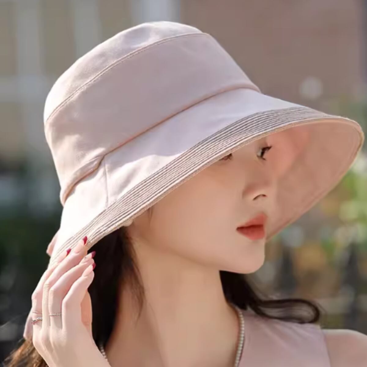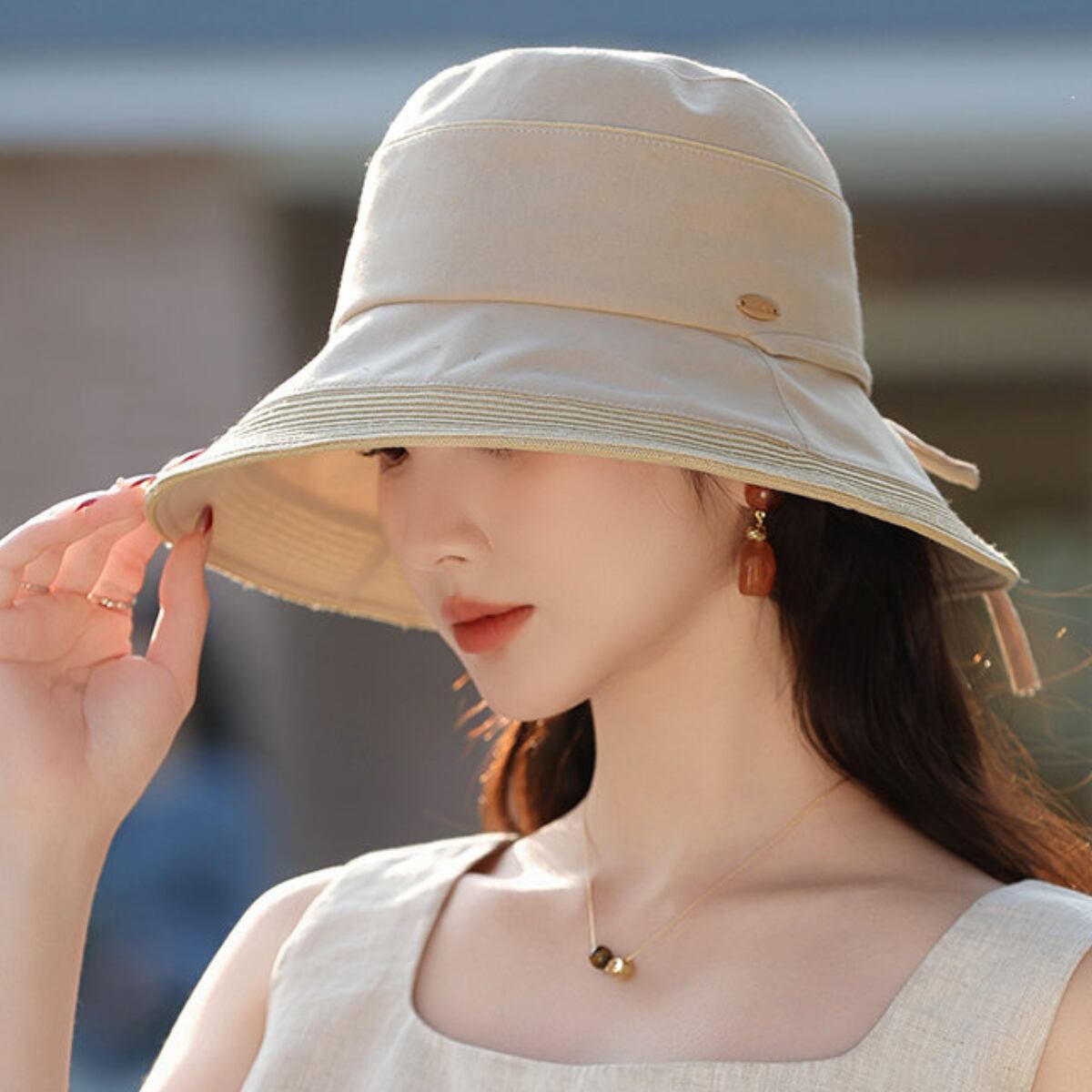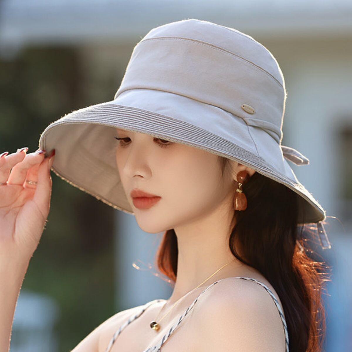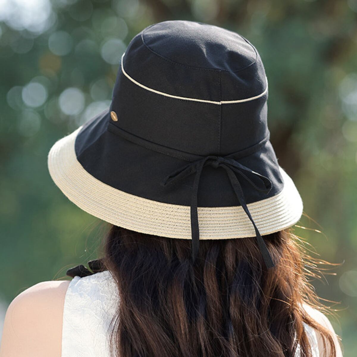 紐付きハット 折りたたみ式 オフホワイト グレー ブラウン ブラック ピンク H6001