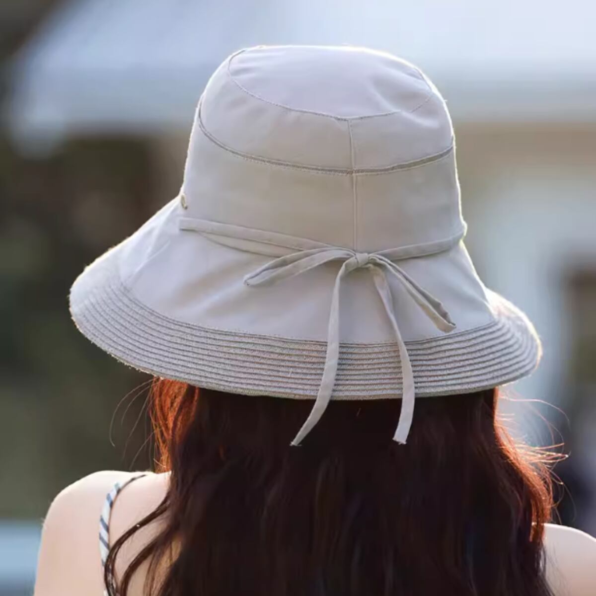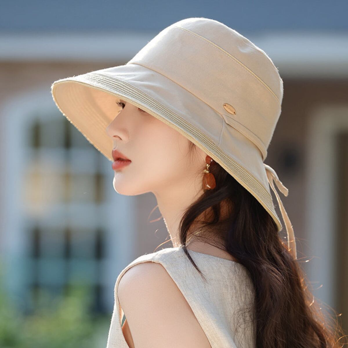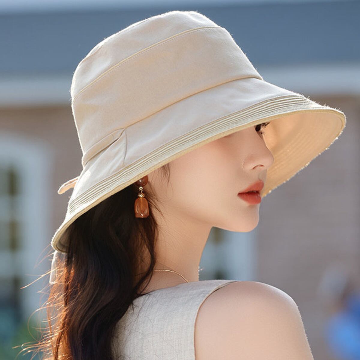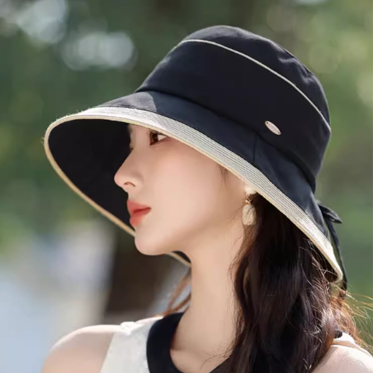 紐付きハット 折りたたみ式 オフホワイト グレー ブラウン ブラック ピンク H6001
