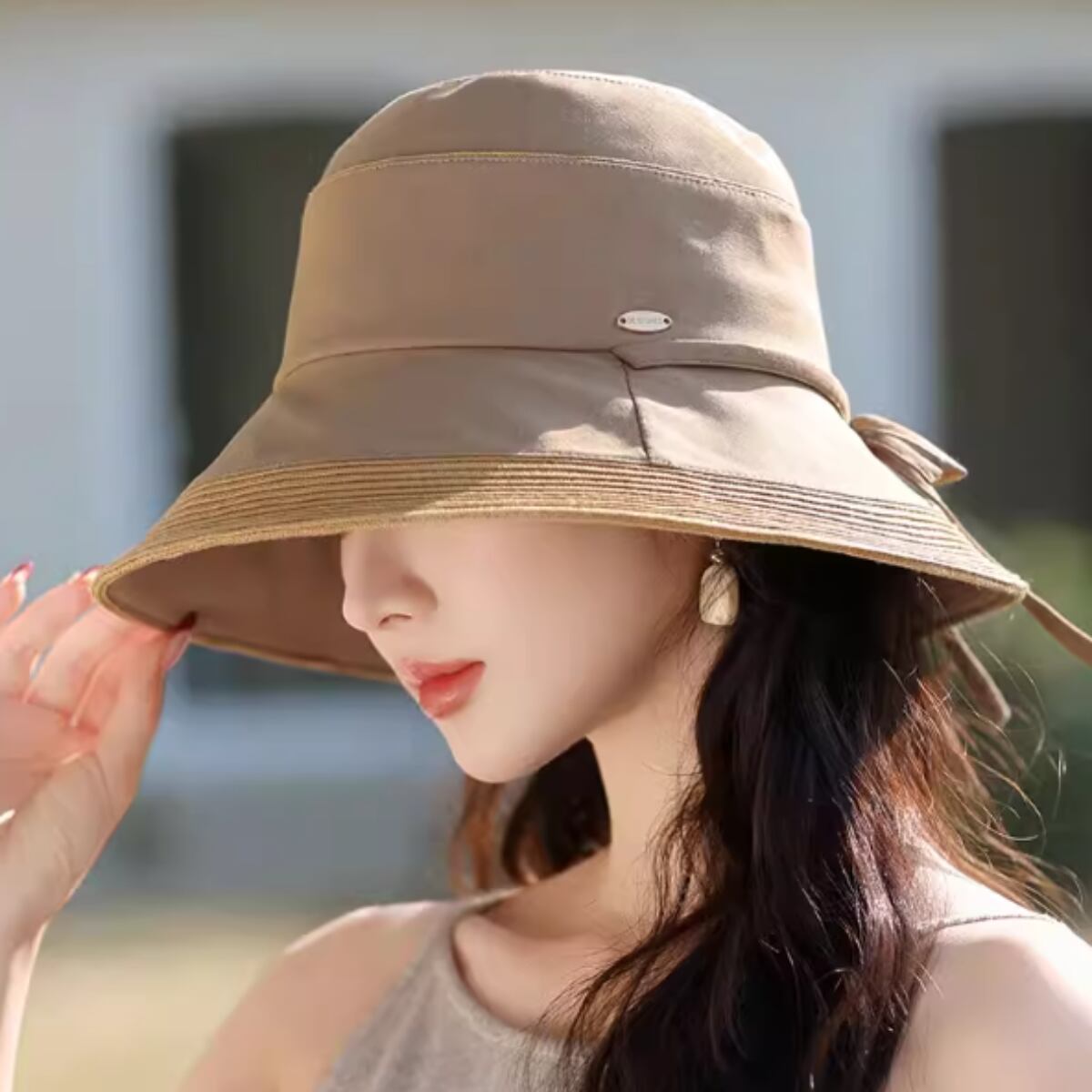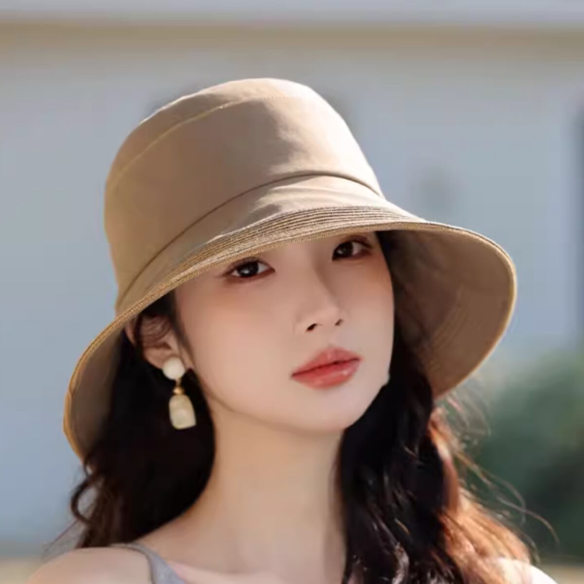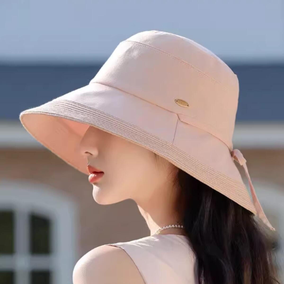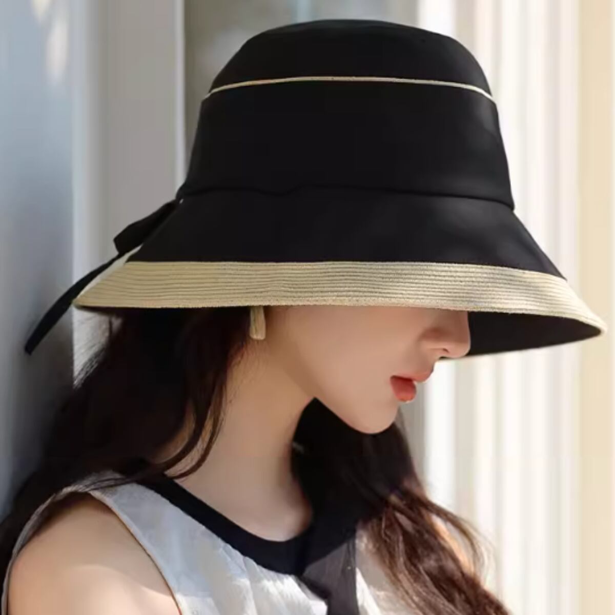 紐付きハット 折りたたみ式 オフホワイト グレー ブラウン ブラック ピンク H6001