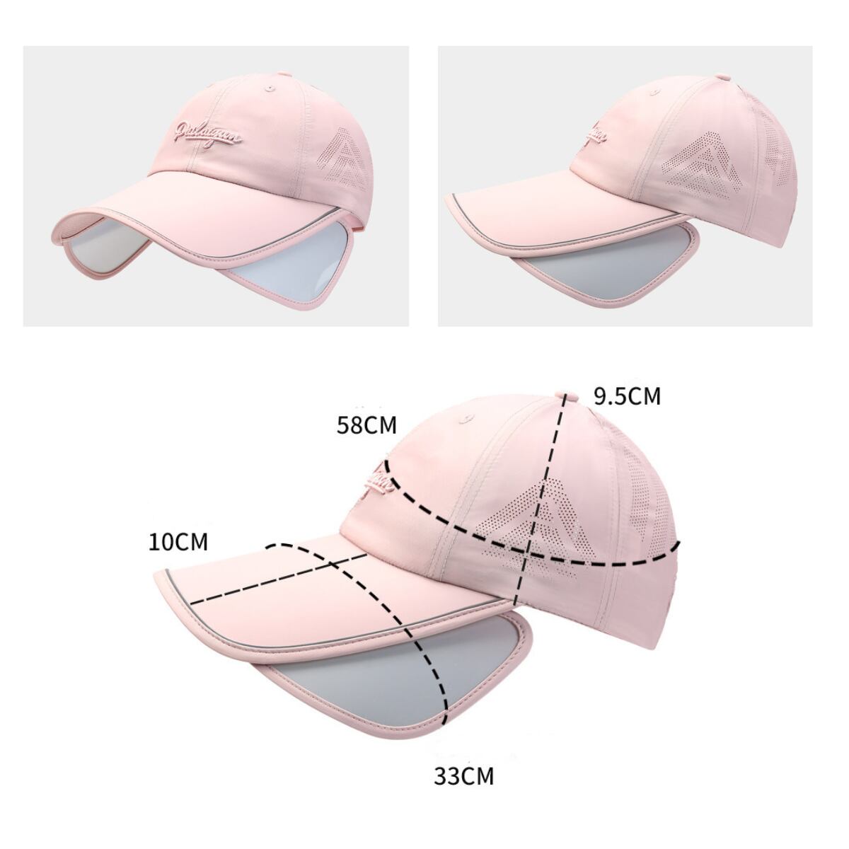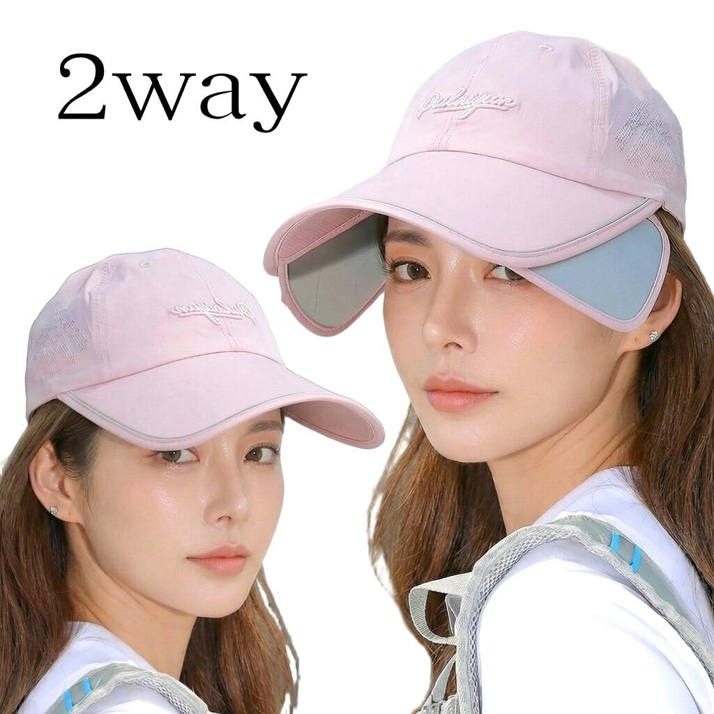 2WAYサンシェードキャップ 折りたたみバイザー付き ピンク ダークグレー ホワイト ブラック ネイビーブルー H6002