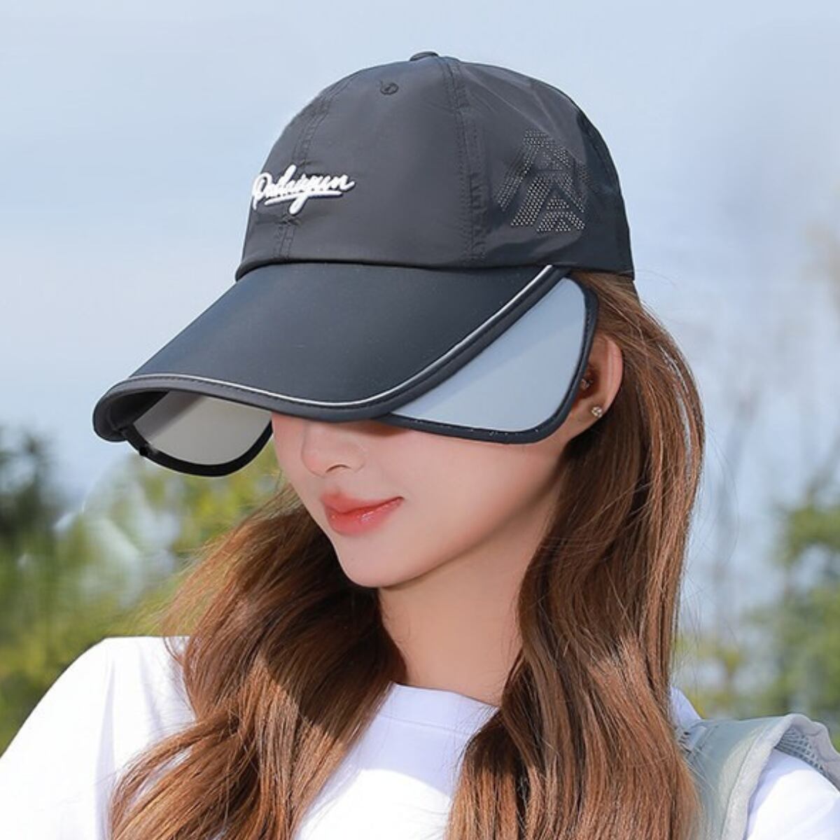 シーンに合わせて形を変えられる2WAYサンシェードキャップです。
