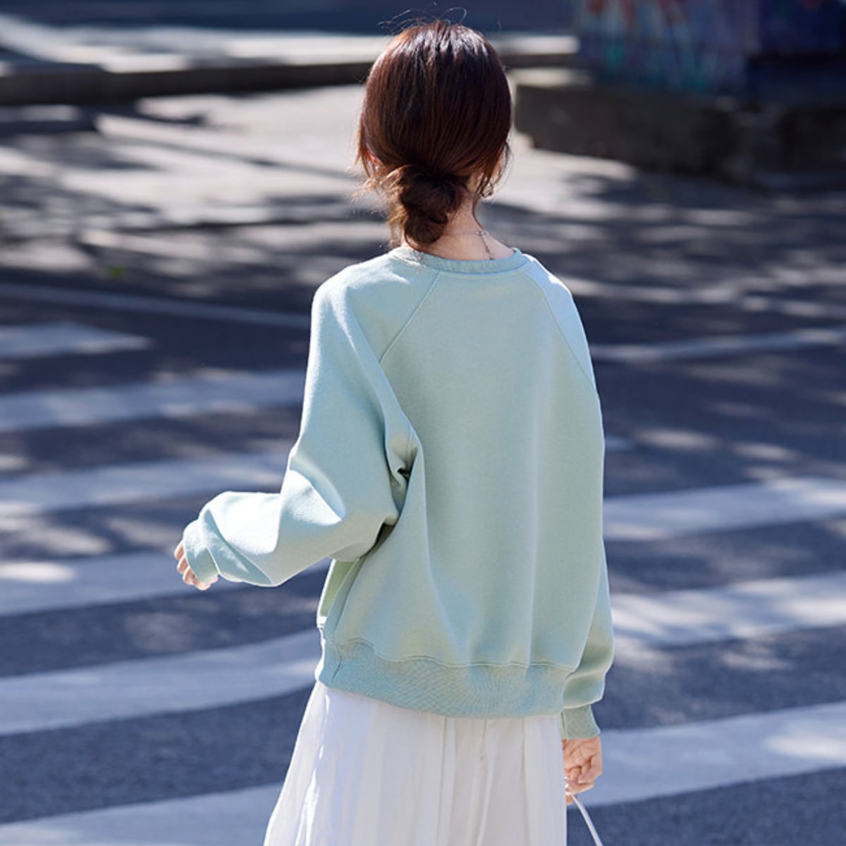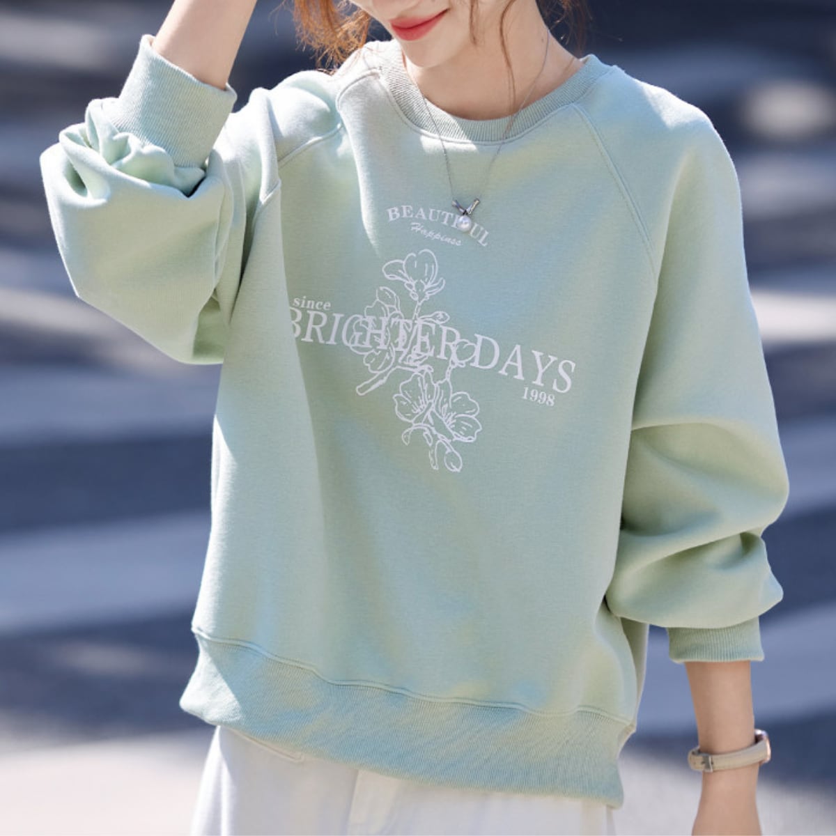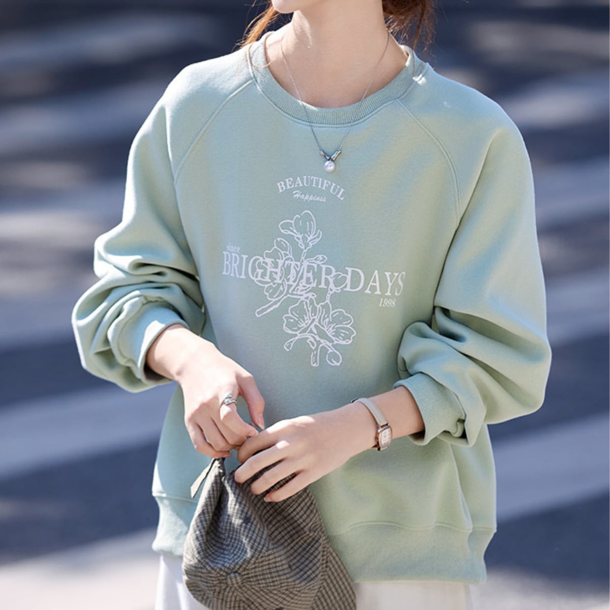 カジュアルだけど上品。プリント入りスウェットで、大人の余裕を演出。