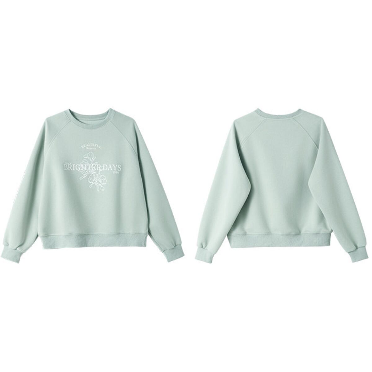 長袖 クルーネック プリント入りトレーナー グリーン T2004