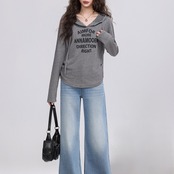 カジュアルながらも洗練された印象のプリントスウェット。