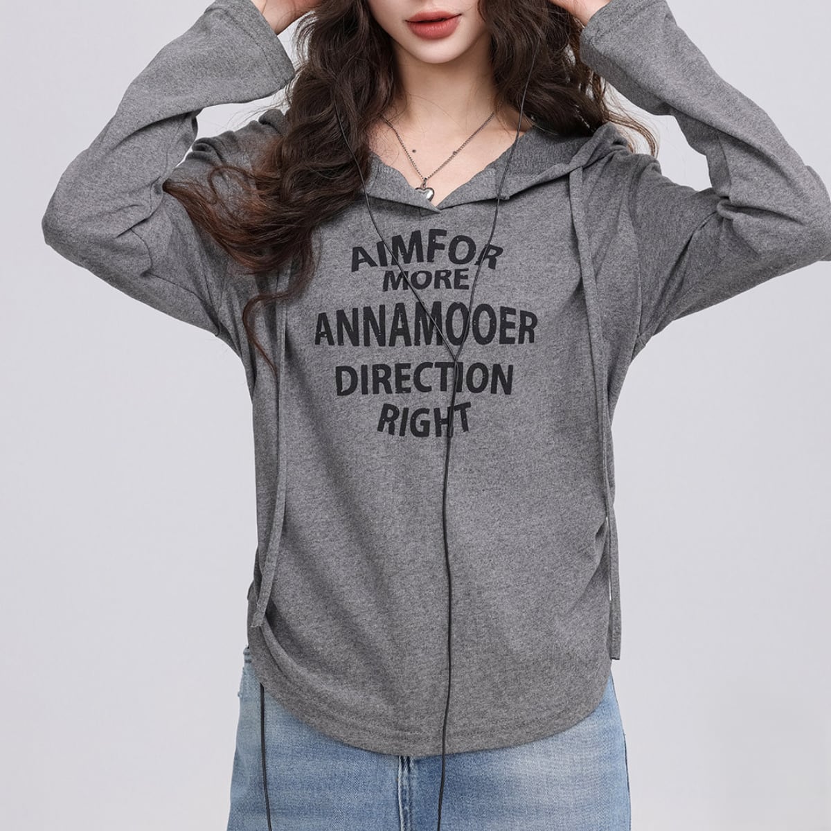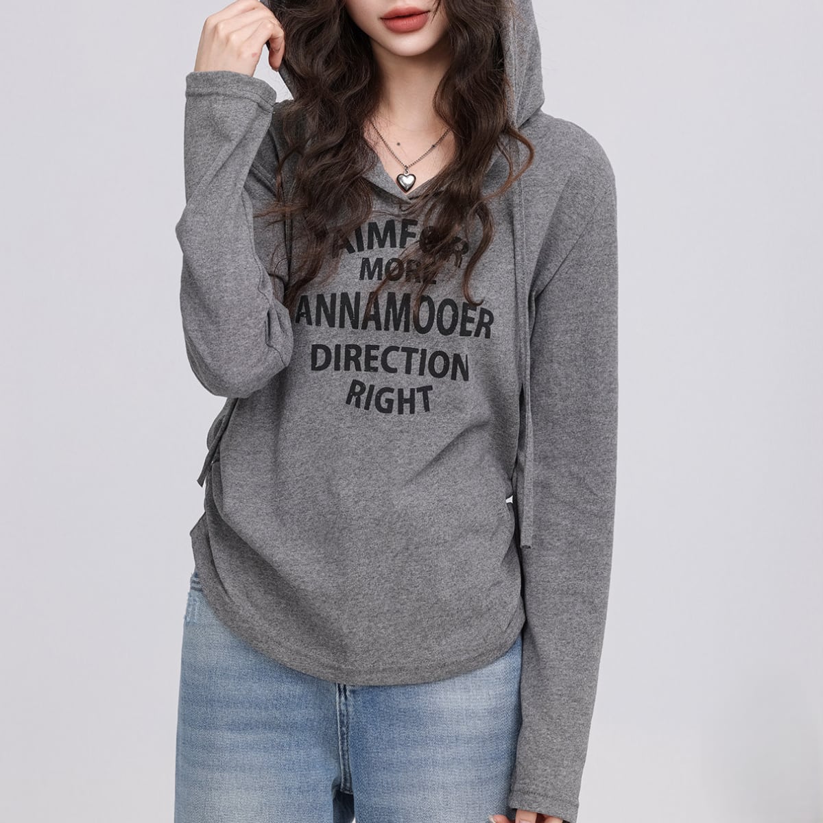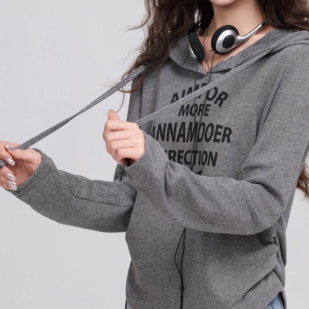 フード付き 長袖プリントカットソー グレー K0011