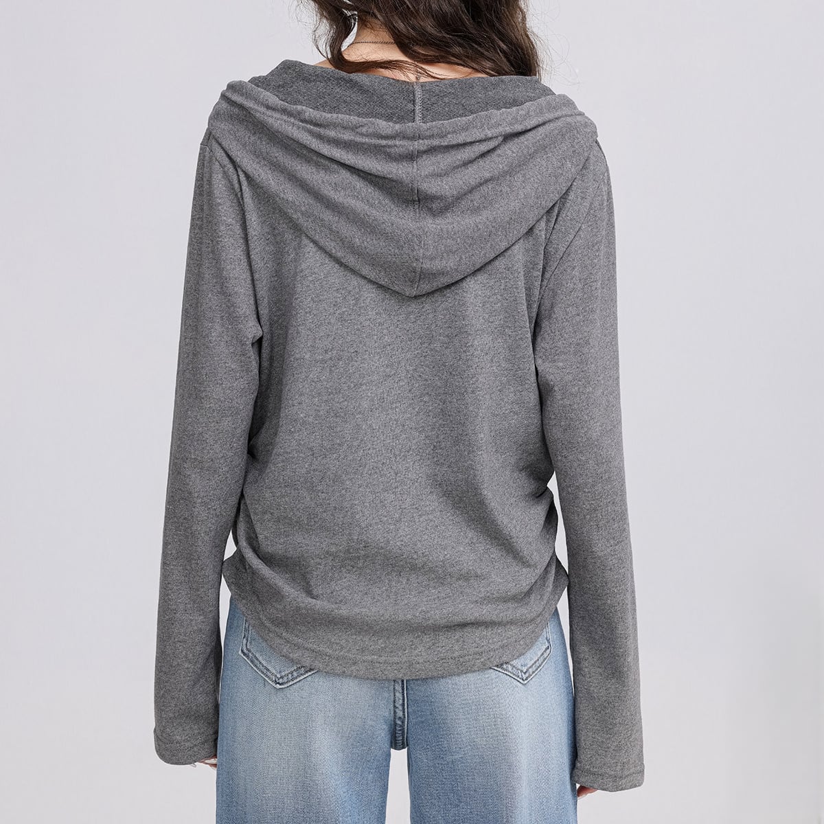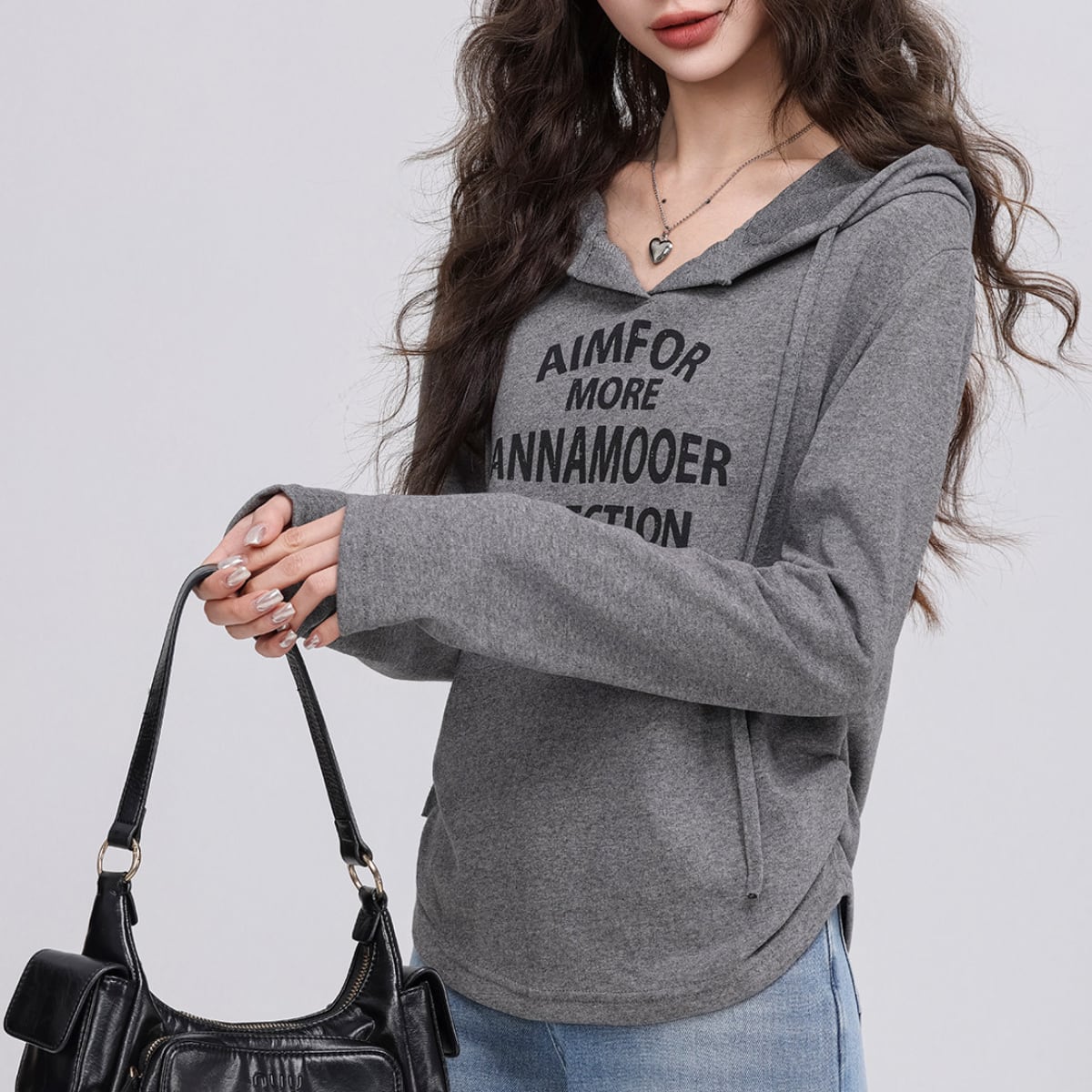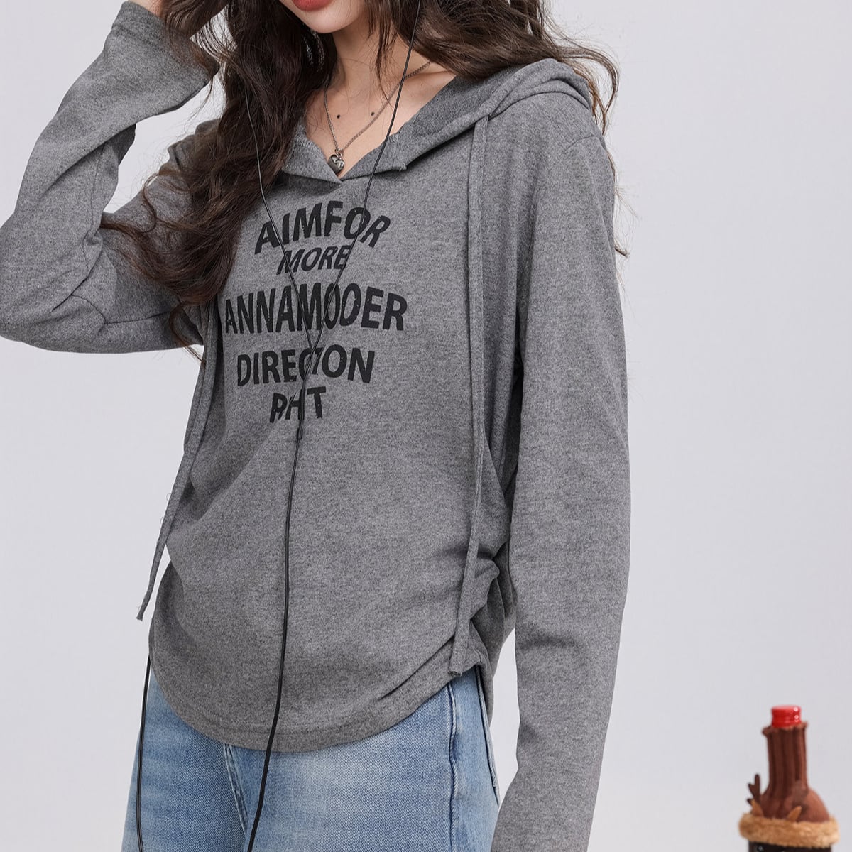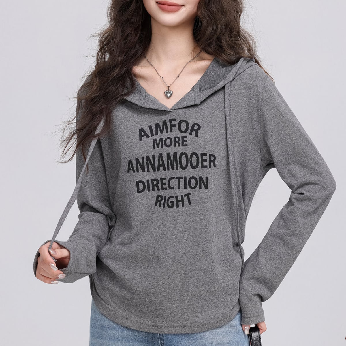 フード付き 長袖プリントカットソー グレー K0011
