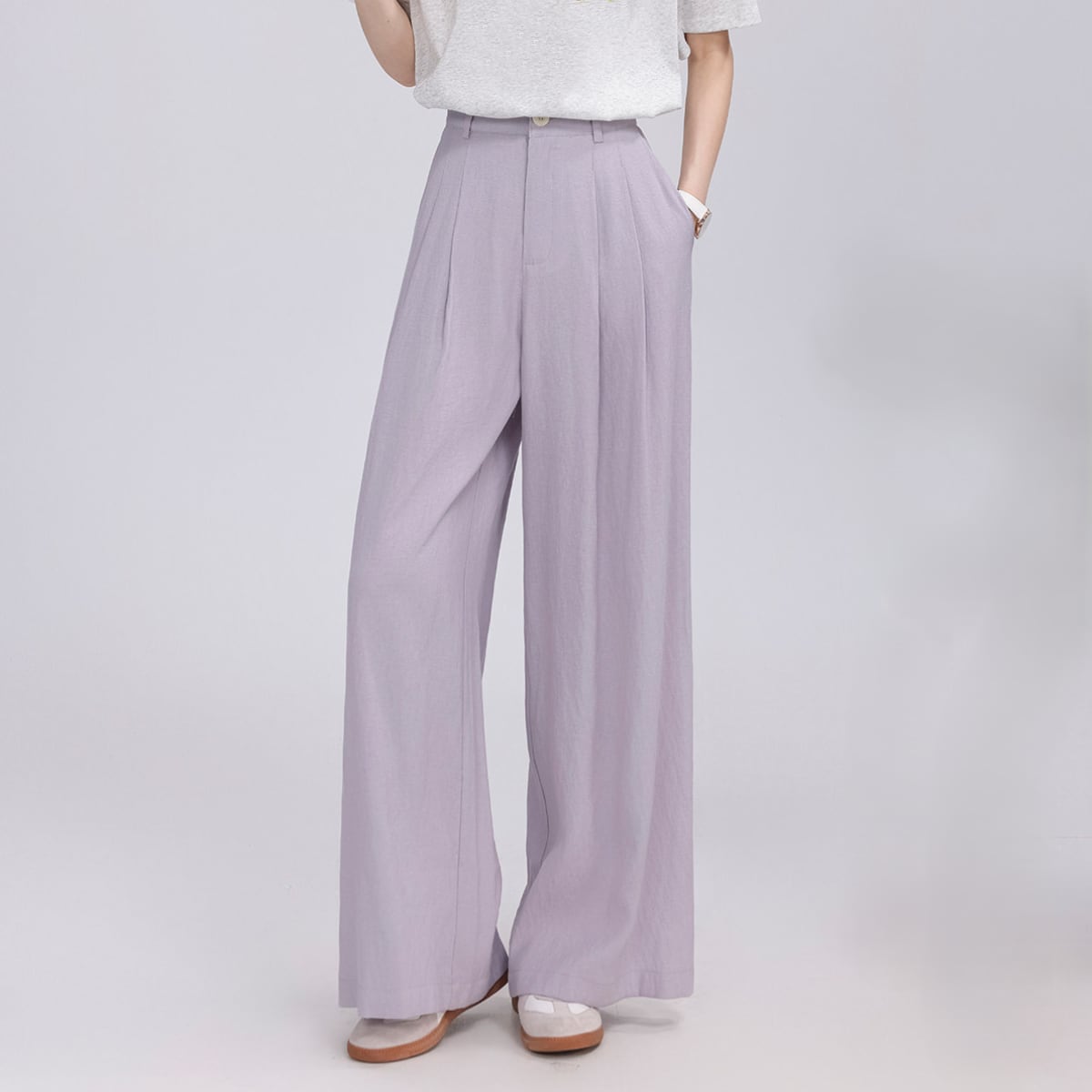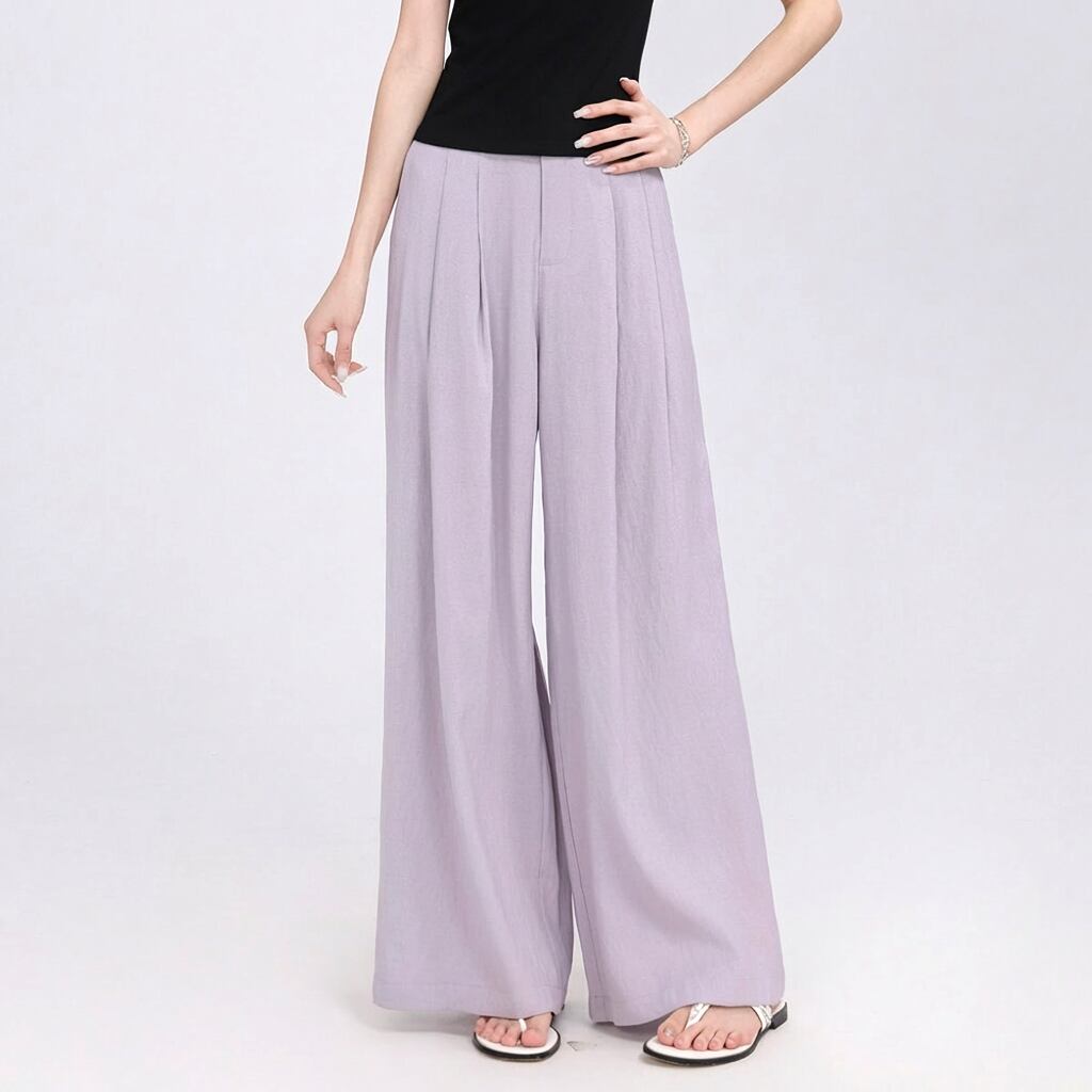 プリーツ入り ワイドレッグ フルレングス パンツ パープルBP3012