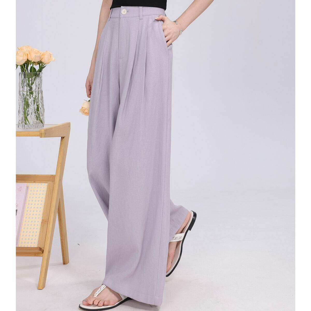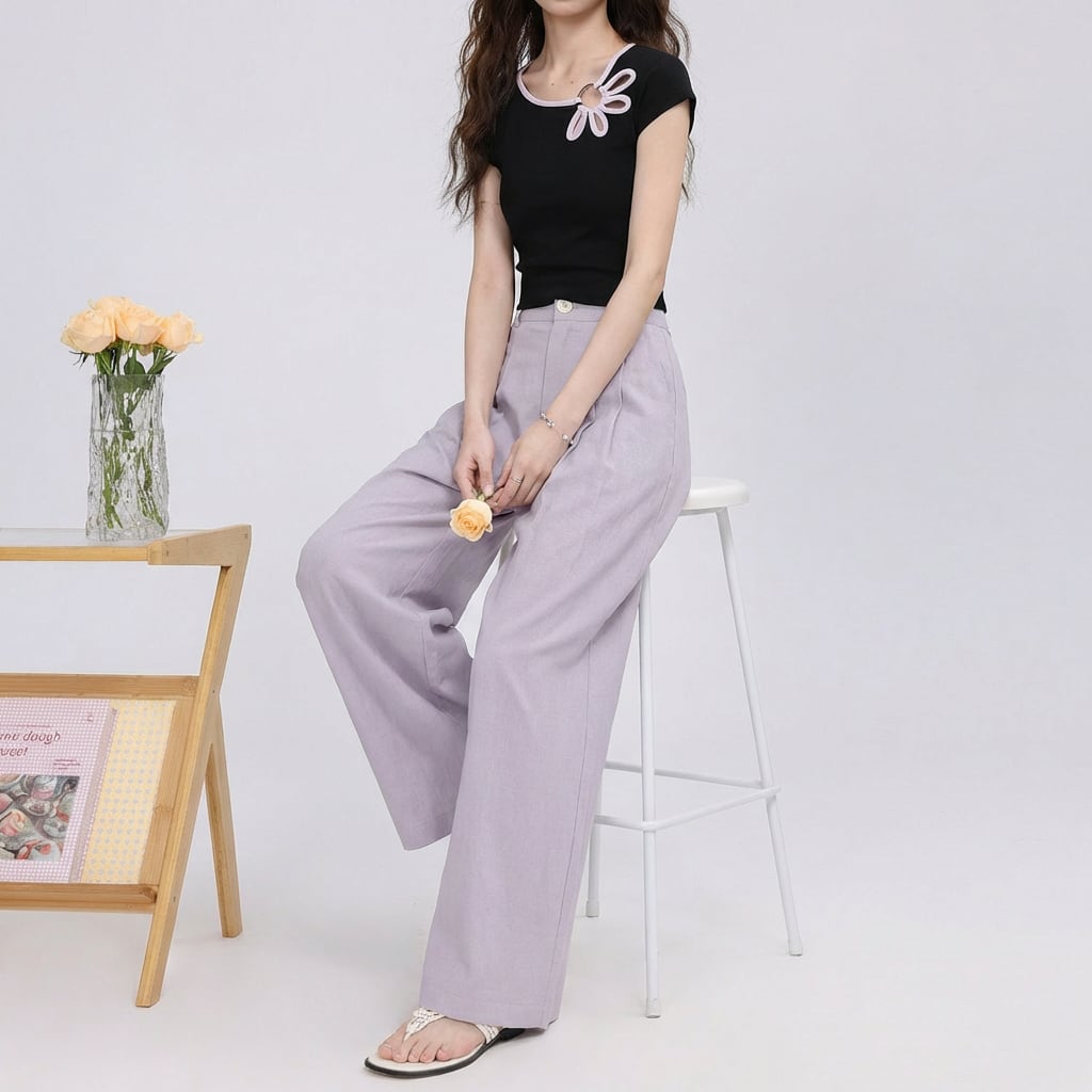 リラックス感と美脚効果を両立するワイドレッグパンツ。