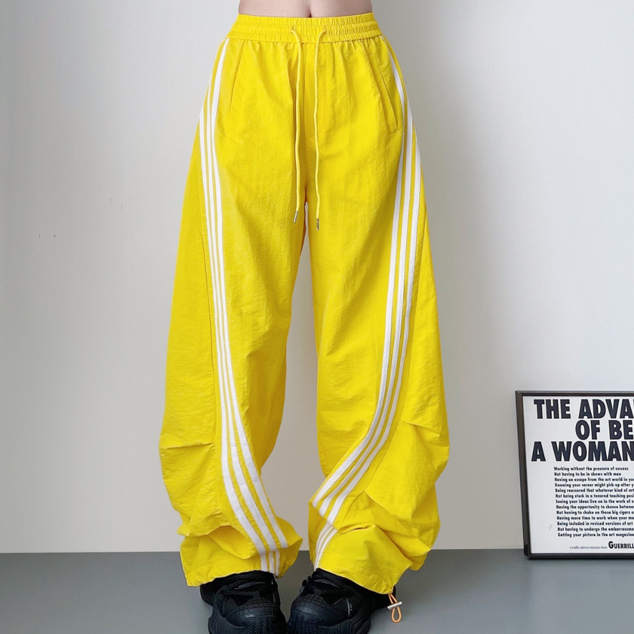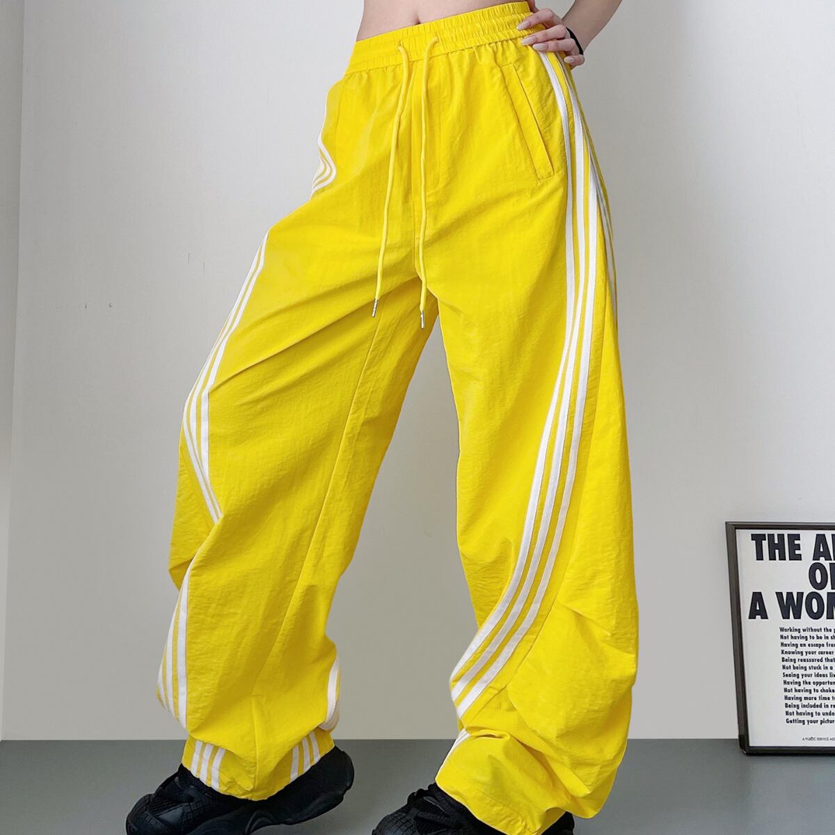 サイドライン ワイドパンツ ホワイト イエロー ブラック BP3014