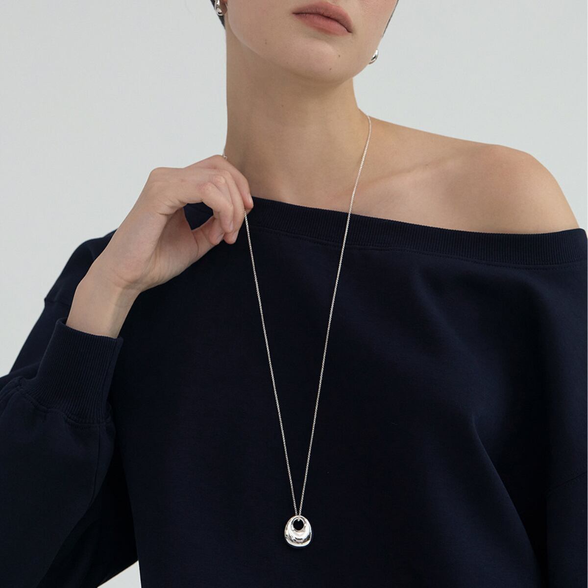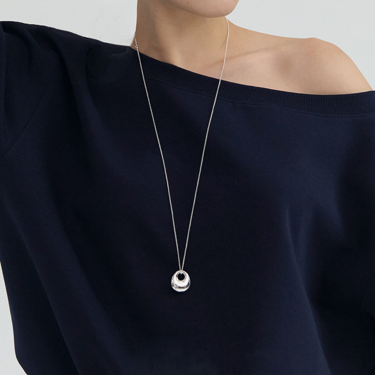 ロングチェーンネックレス ミニマルサークル シルバー BA7006