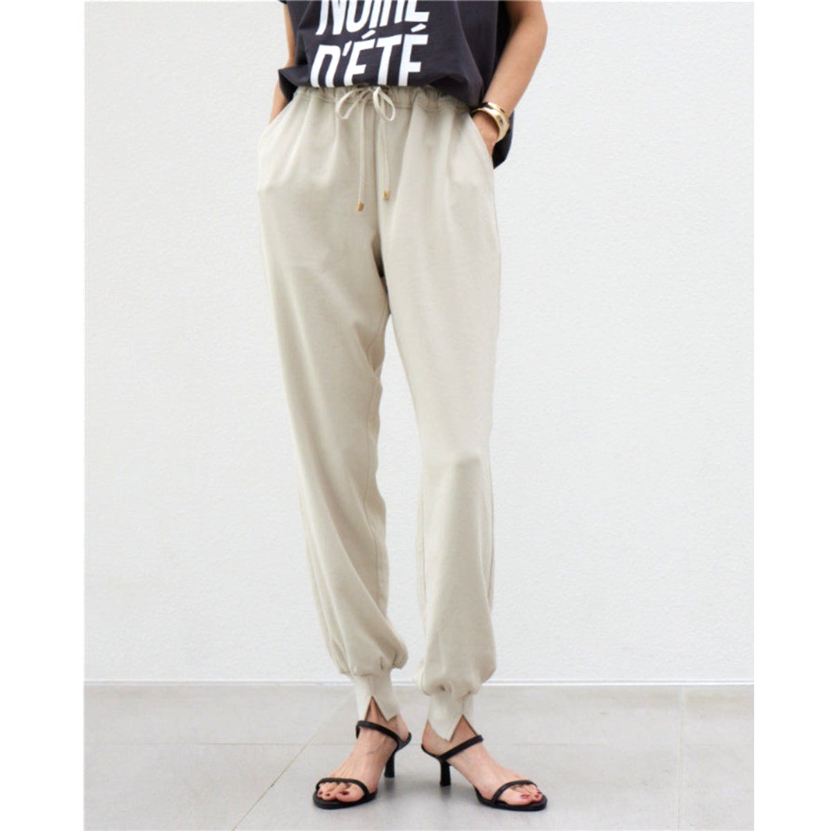 ドローストリングでウエスト調整が可能で、リラックスした履き心地です。シンプルなトップスと合わせるだけで、こなれ感のあるスタイルが完成します。